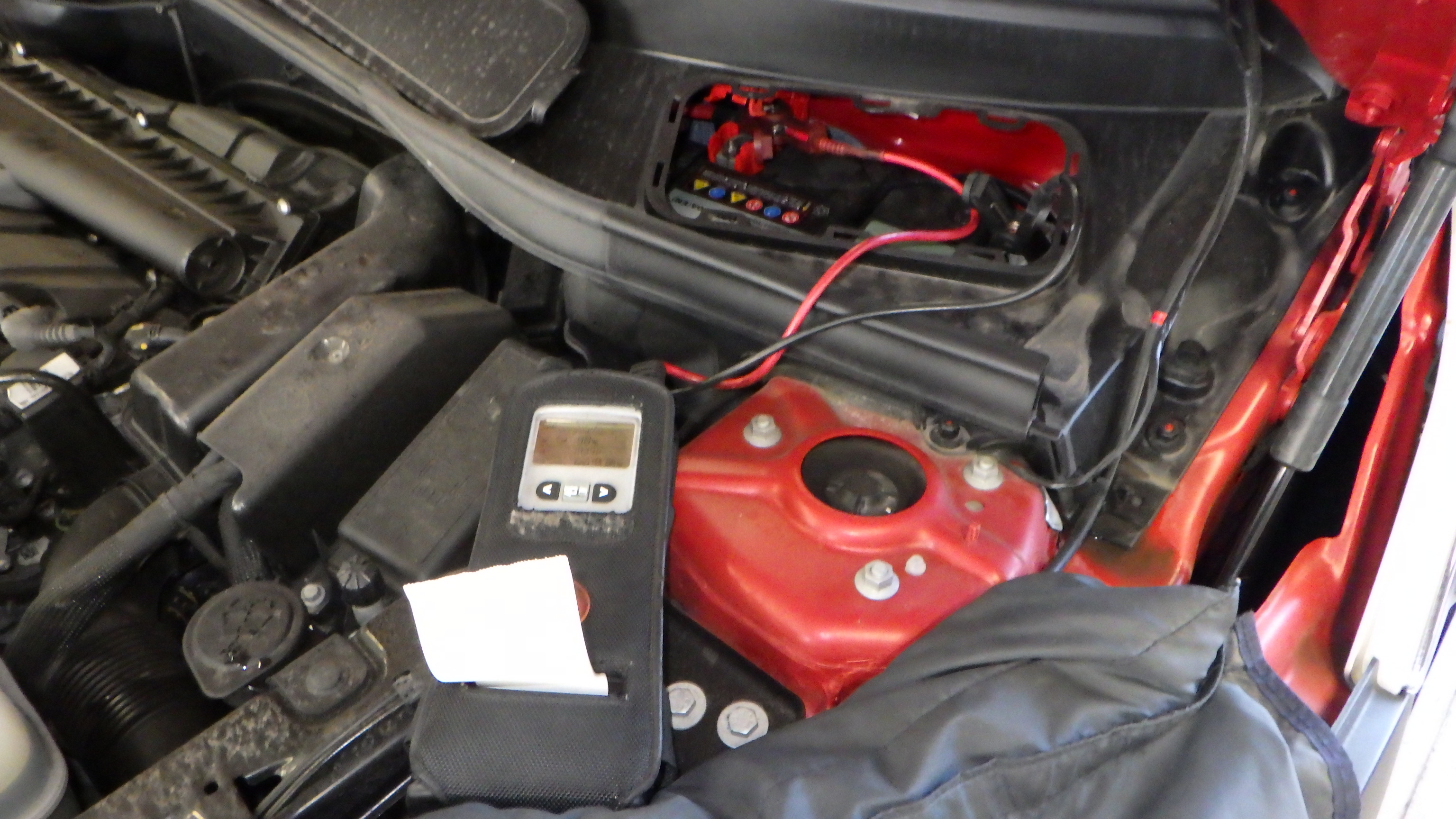 テスターにてバッテリーの点検を実施しています。