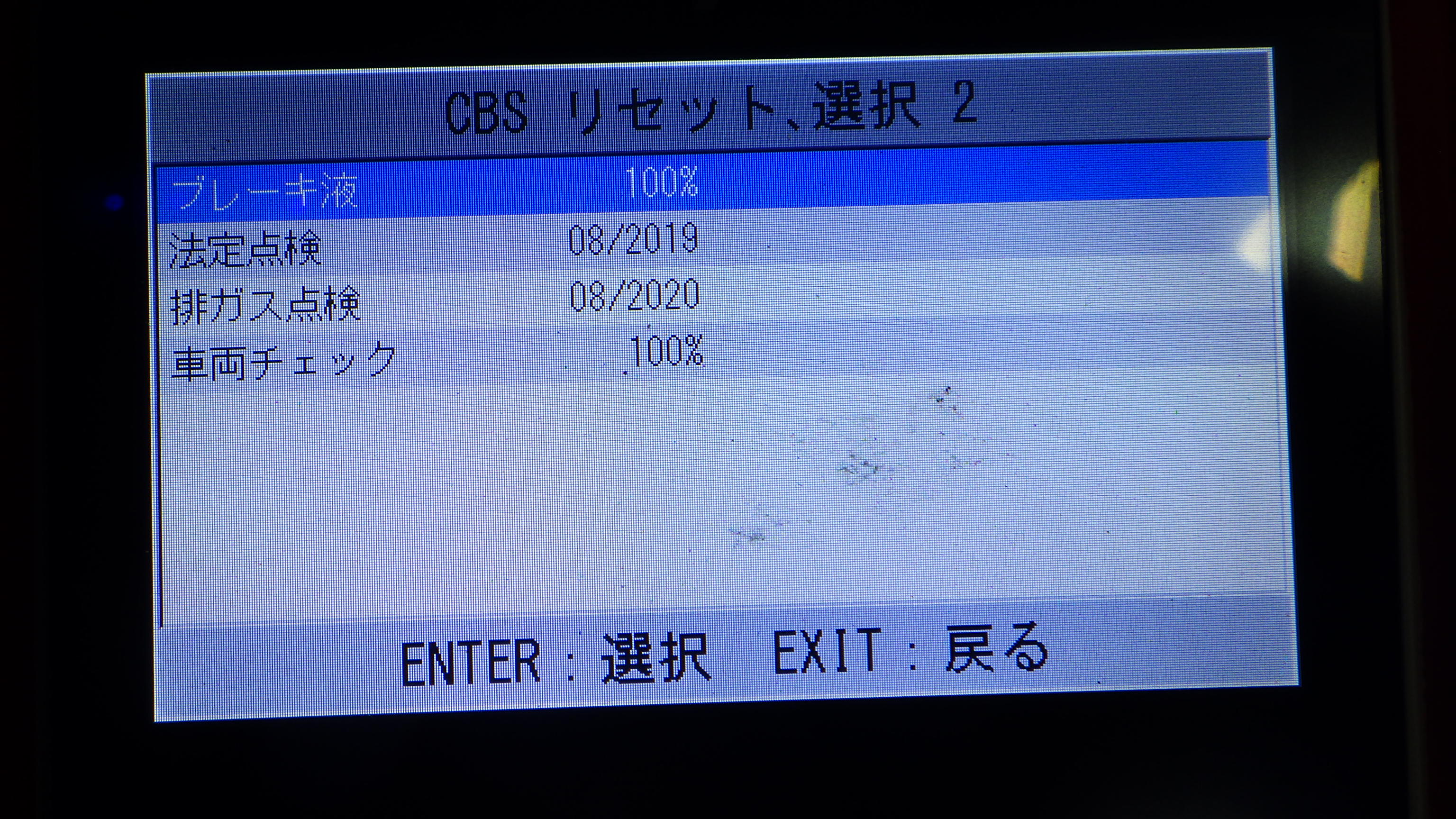 テスターにて故障コードの確認と、サービスのリセットを実施しています。