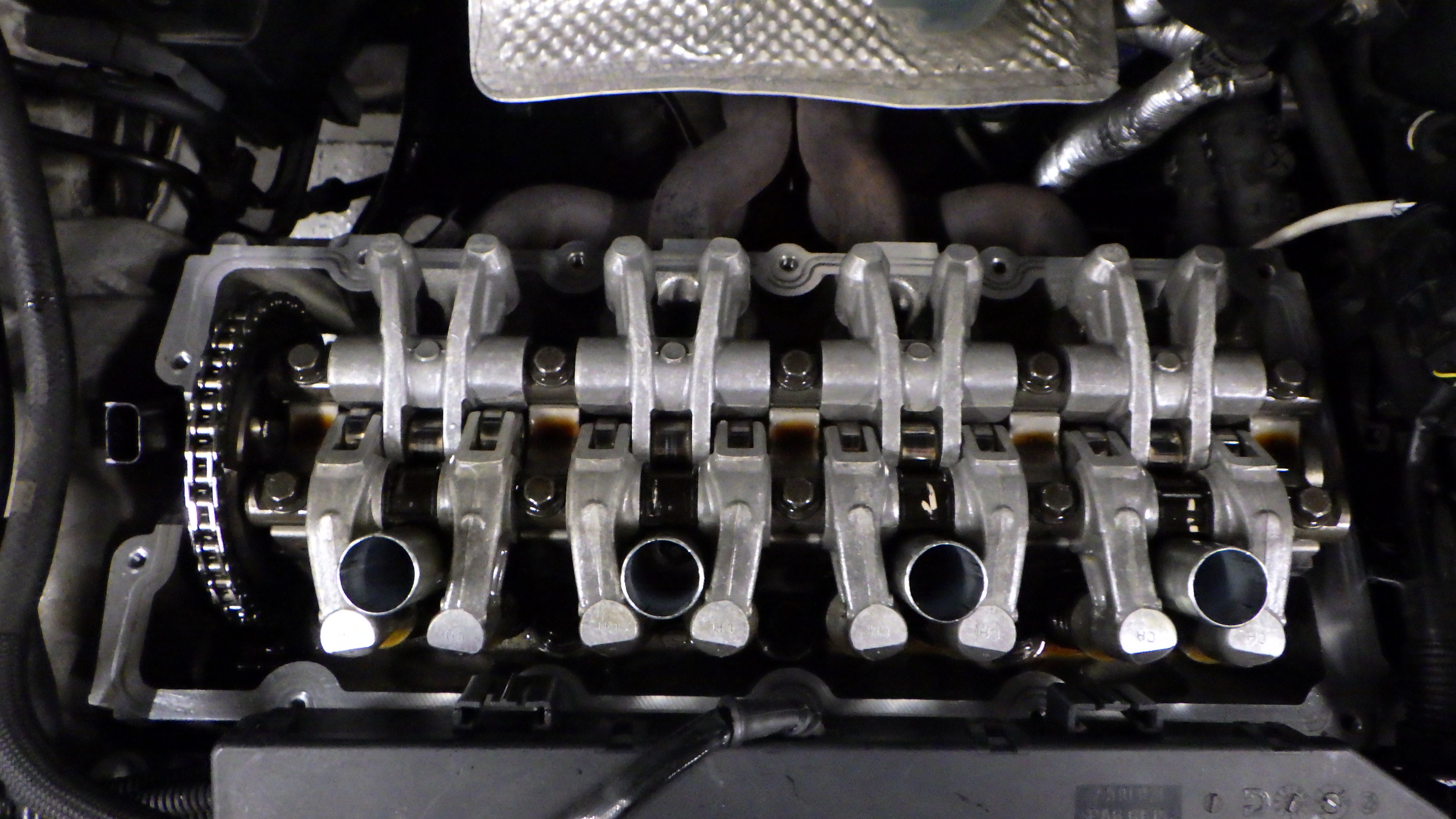 ヘッドカバーを取外し、ガスケットの交換を実施しています。