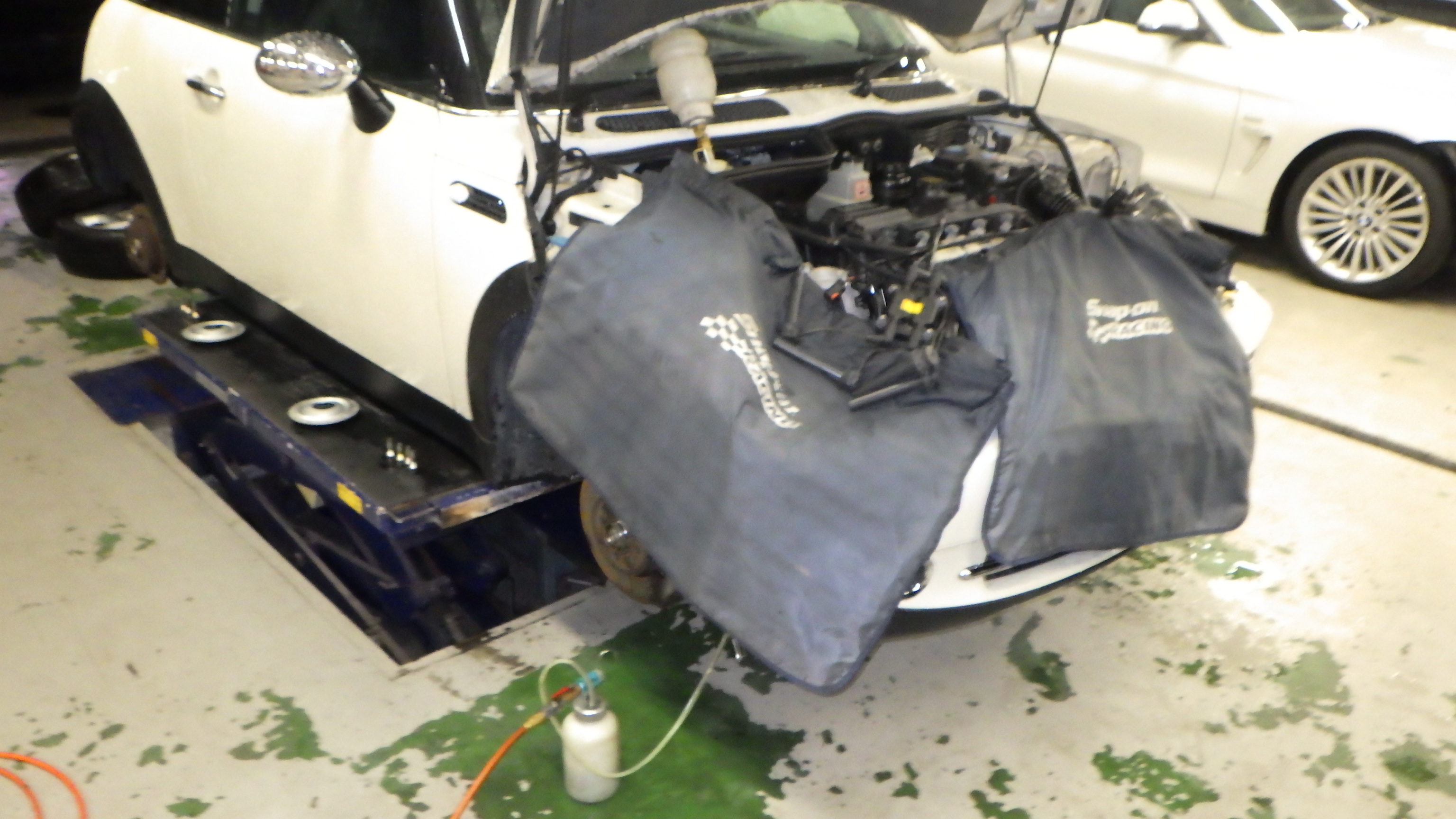 I様 BMWミニ オイル、LLC漏れ修理レポート 75256 km この度はご入庫ありがとうございます。 エンジンオイル、クーラント漏れの修理作業に取り掛かって…