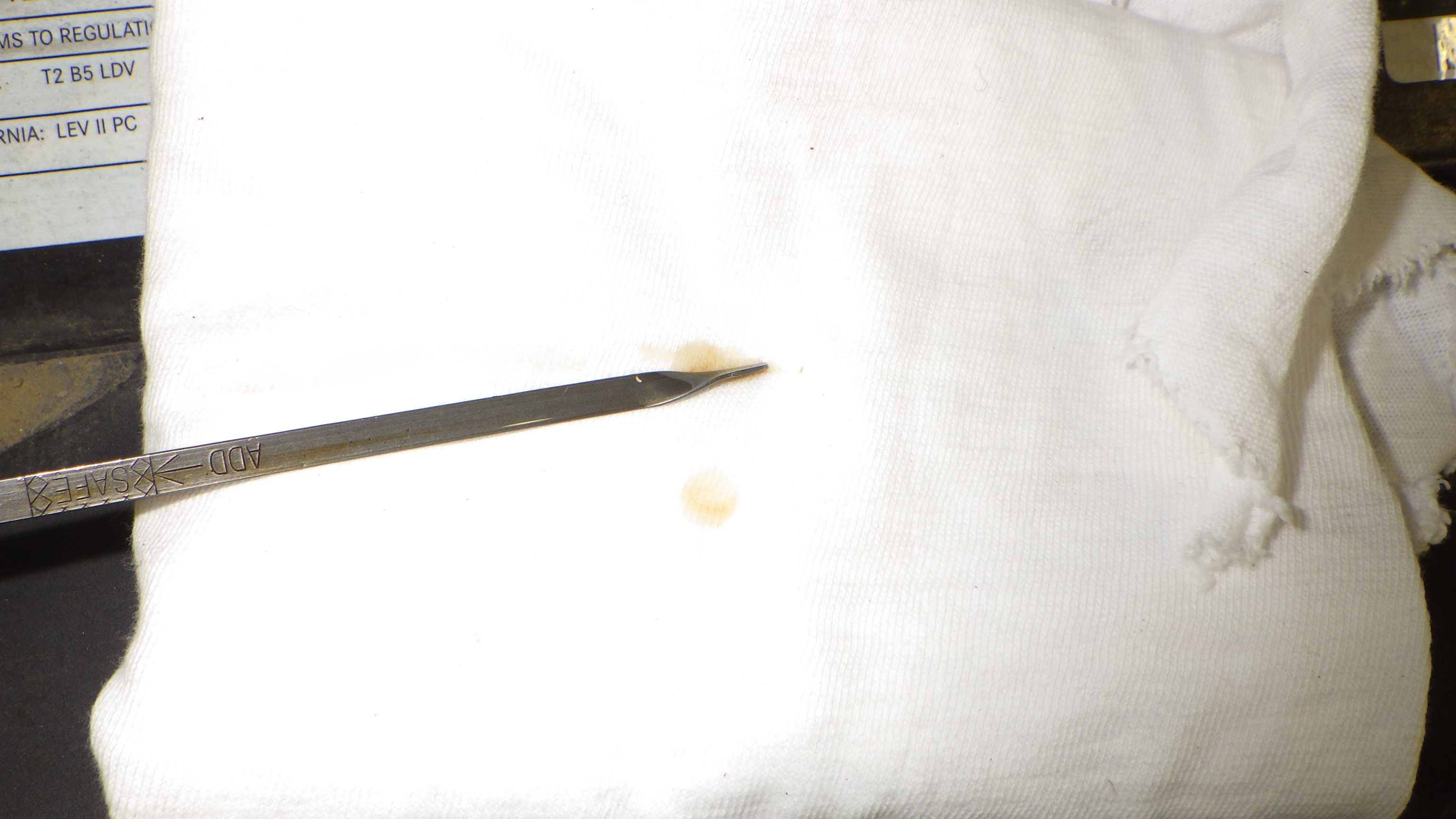 交換前、交換後のオイルです。交換後オイル量の点検も実施しています。