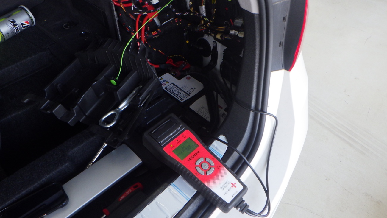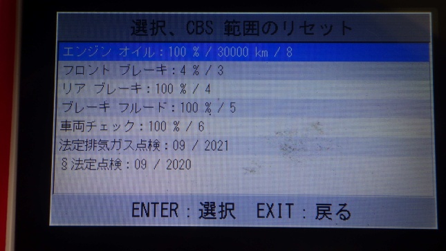 テスターにて故障コードの確認と、サービスのリセットを実施しています。