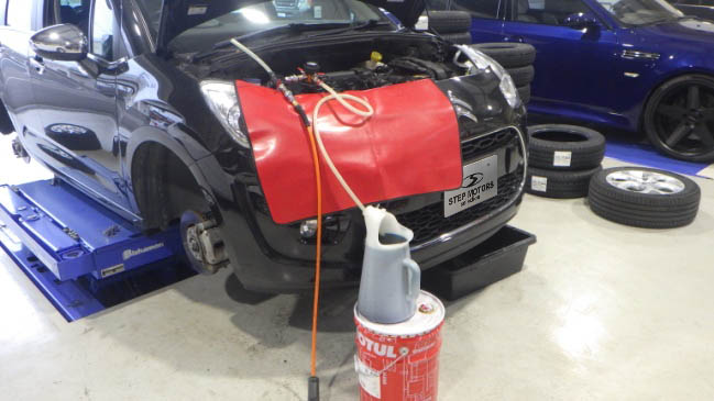 交換前、交換後のエンジンオイルです。オイル量の確認も実施しています。