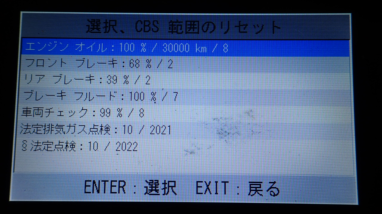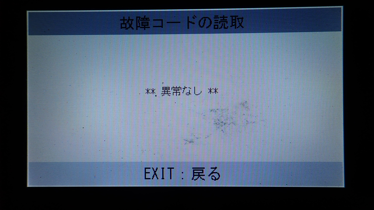 テスターにて故障コードの確認と、サービスのリセットを実施しています。