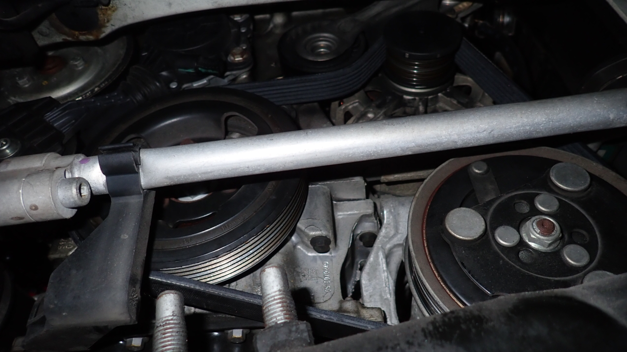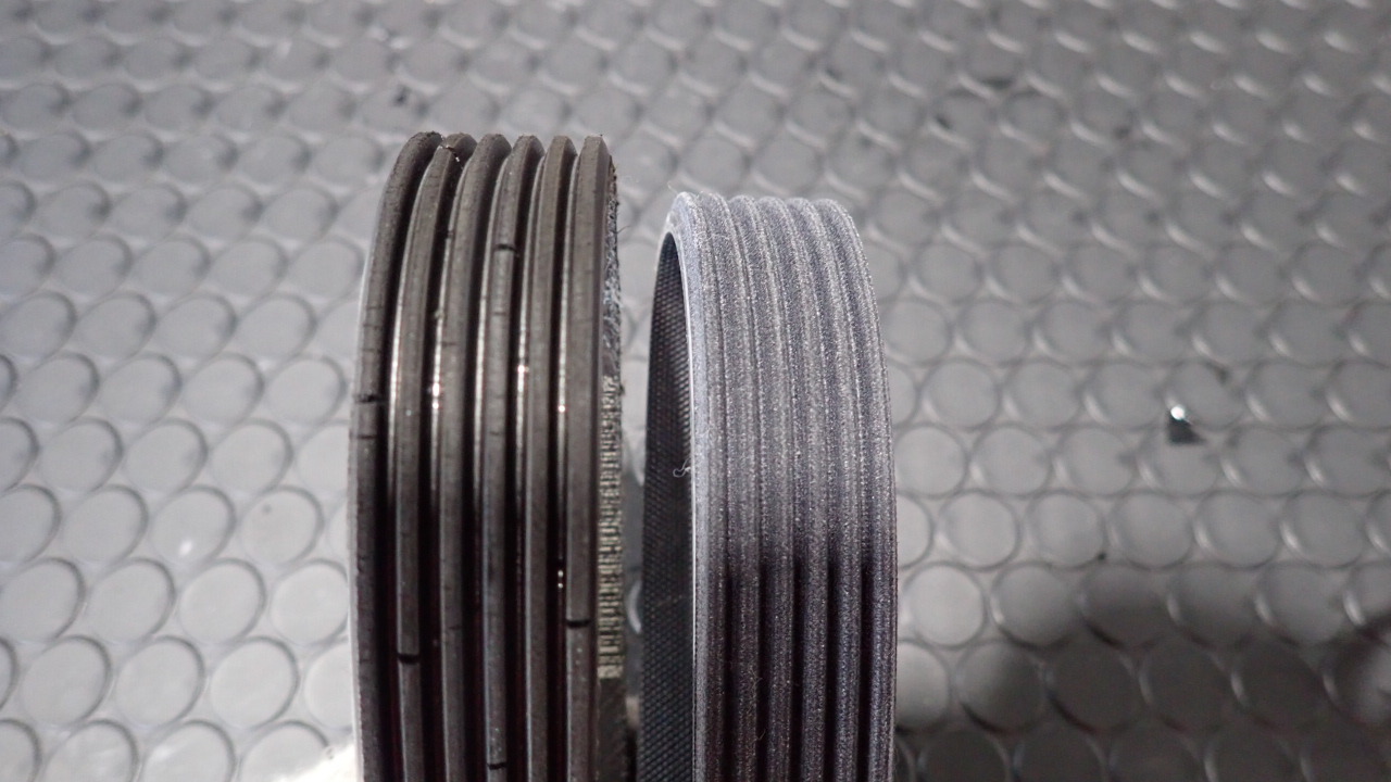 ドライブベルトです。細かな亀裂が発生していましたので交換実施しています。