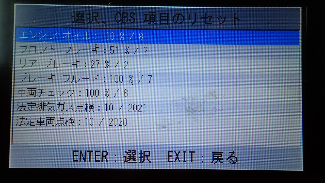 テスターにて故障コードの確認と、サービスのリセットを実施しています。