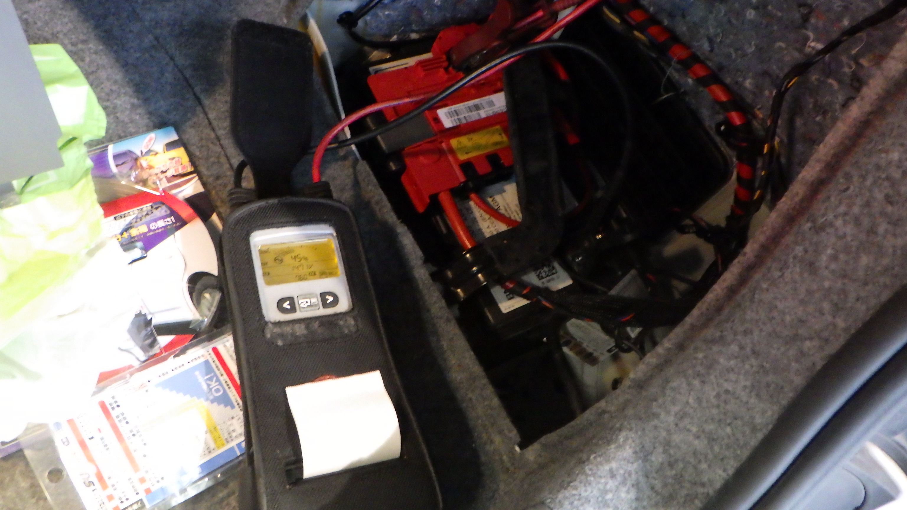 テスターにてバッテリーの点検を実施しています。
