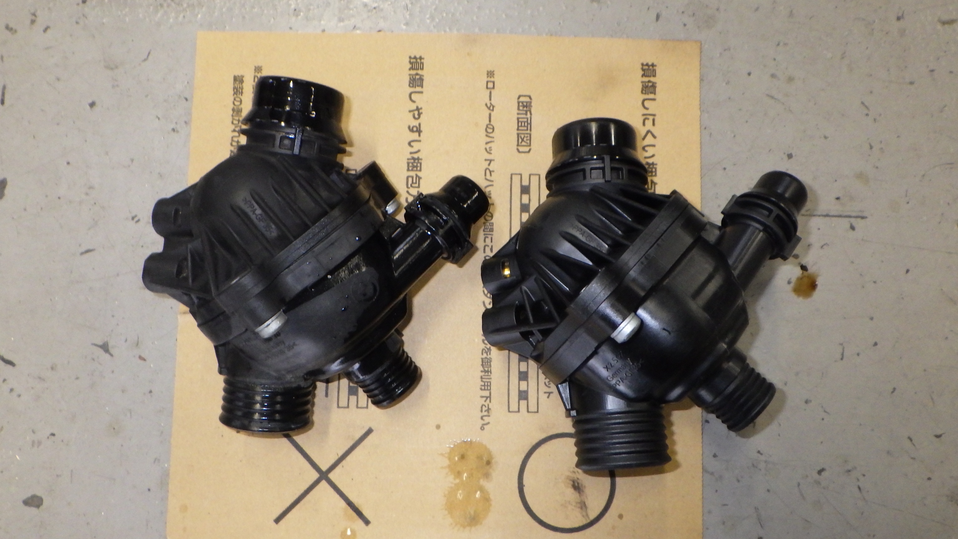 右が新品のサーモスタットです。
