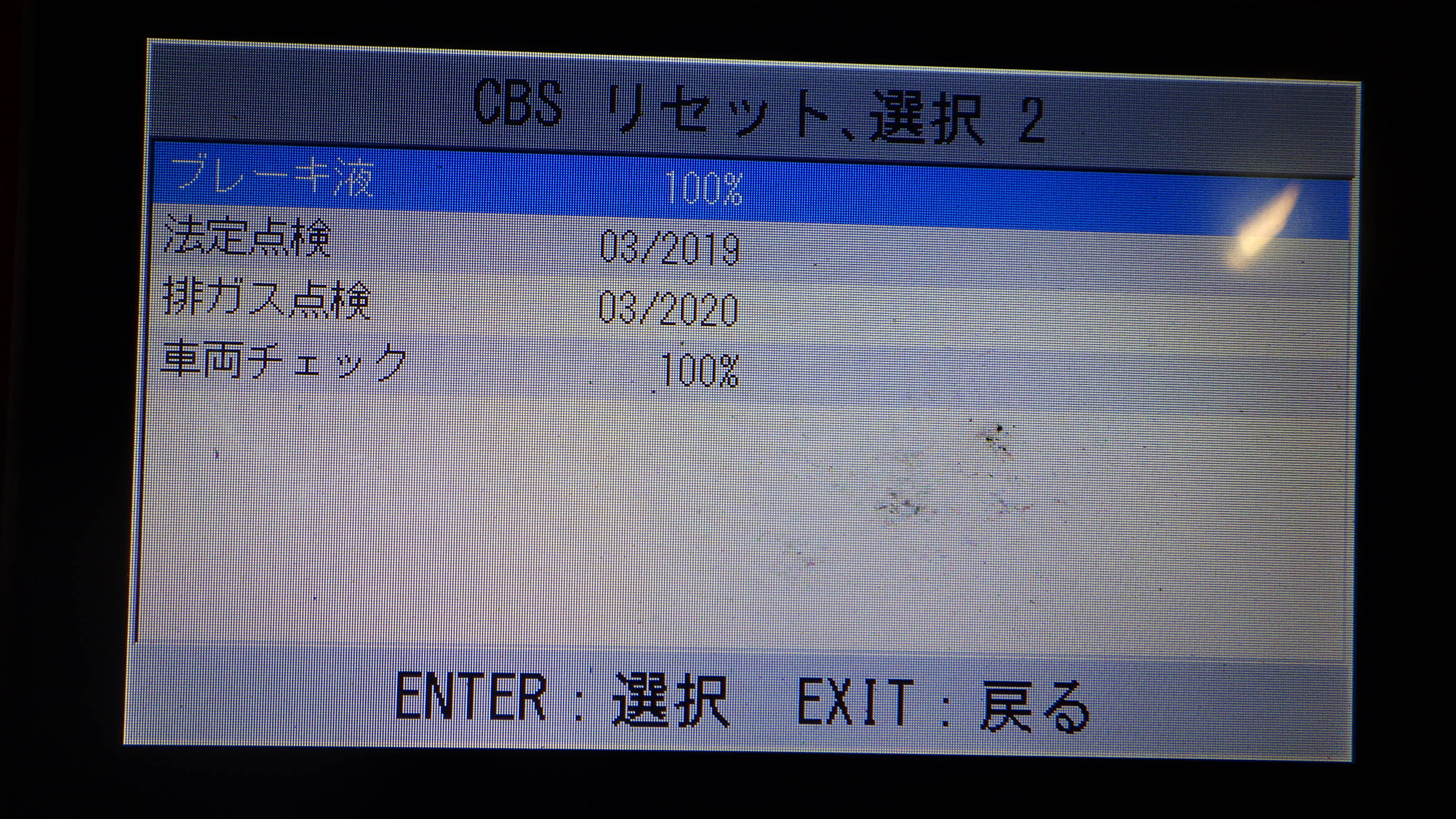 テスターにて故障コードの確認と、サービスのリセットを実施しています。