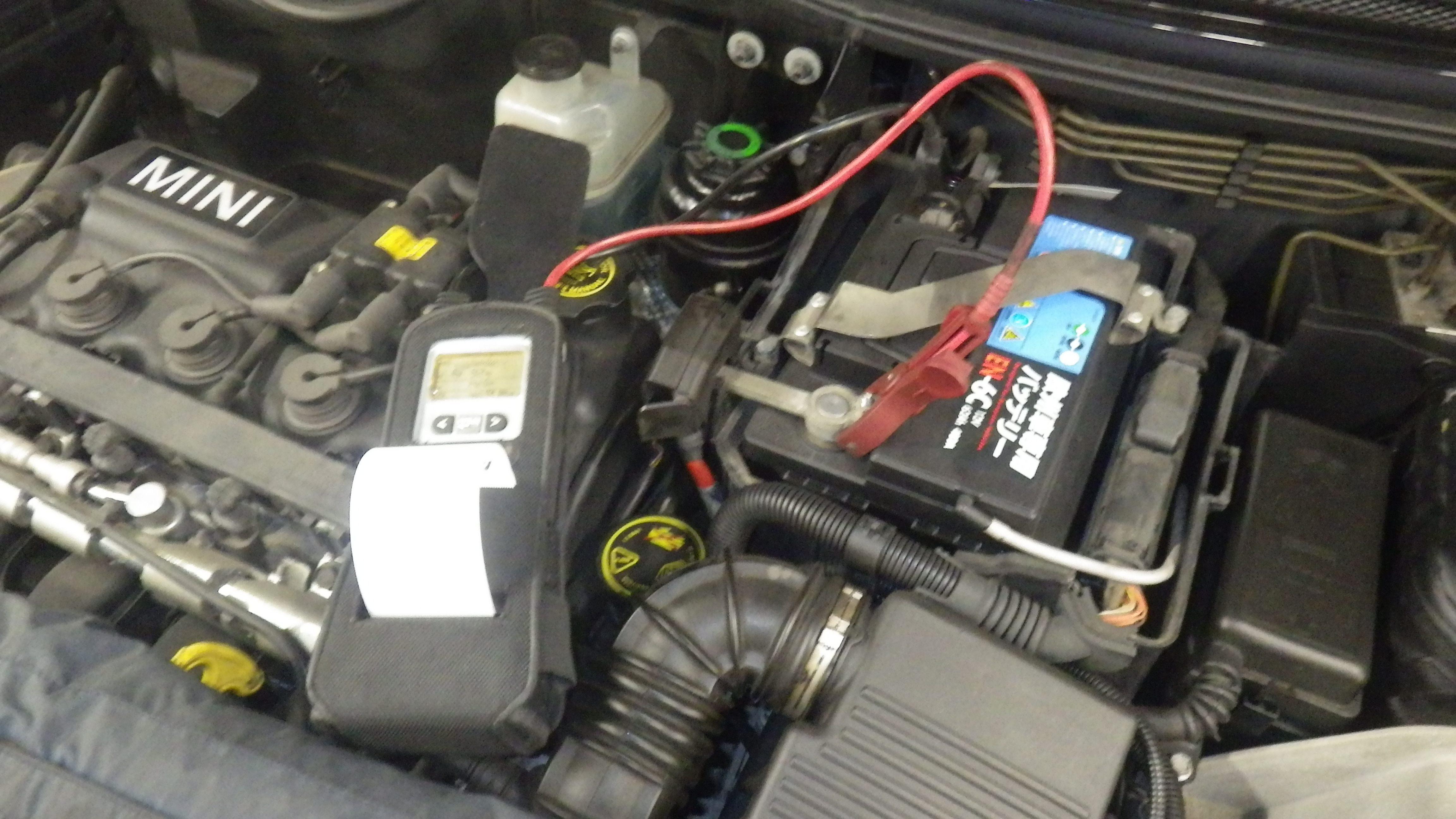 テスターにてバッテリーの点検を実施しています。