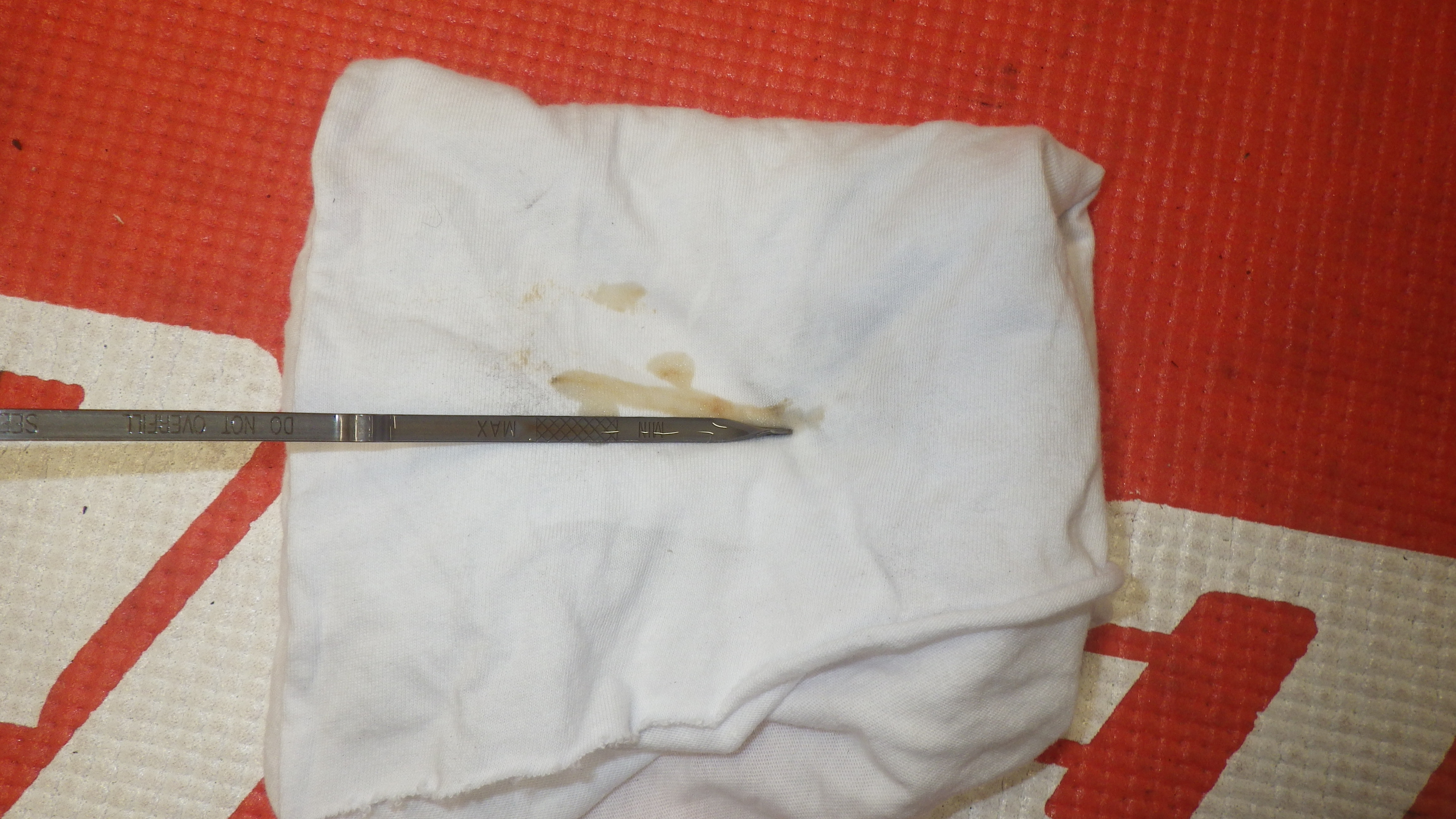 交換前、交換後のオイルです。交換後オイル量の点検も実施しています。