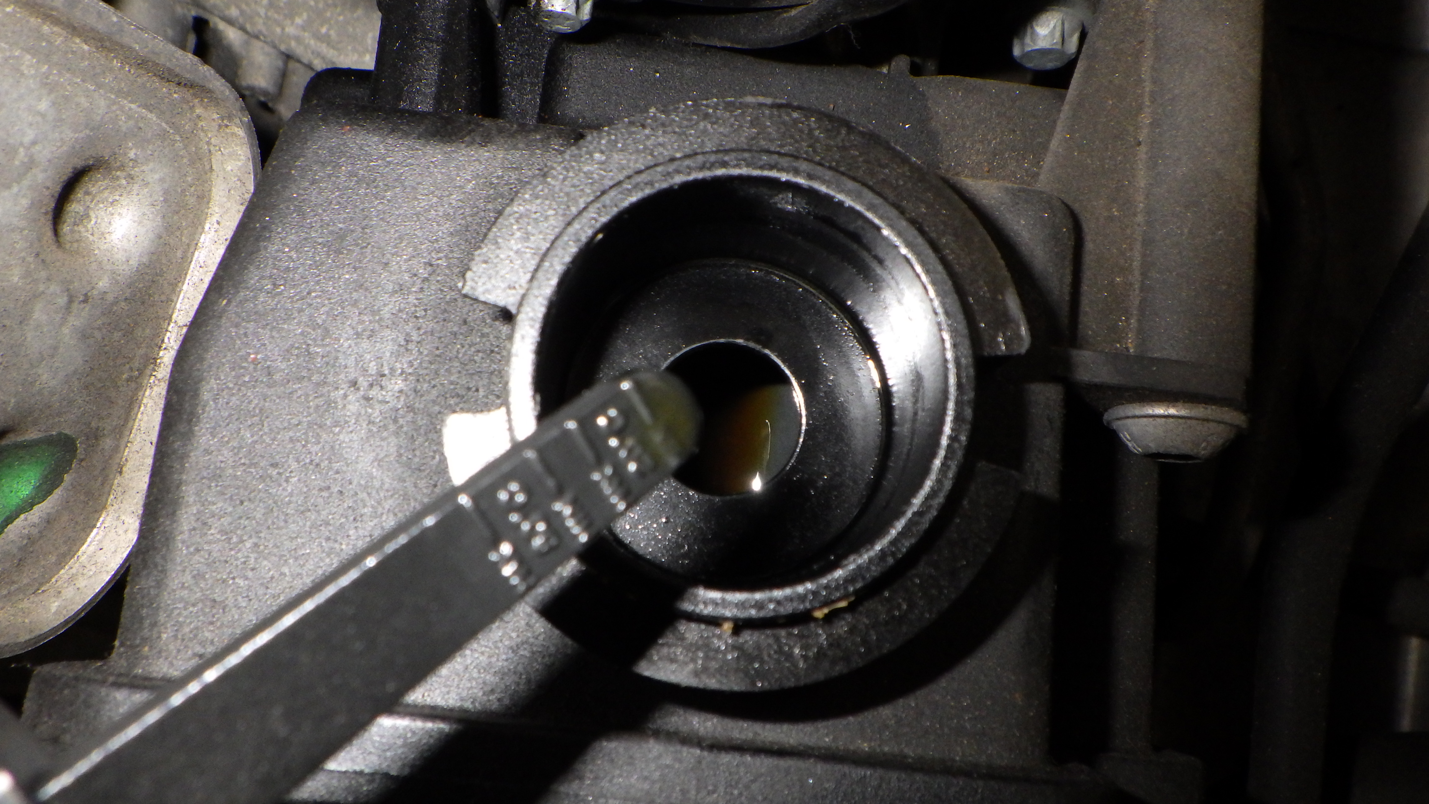 交換前、交換後のオイルです。交換後オイル量の点検も実施しています。