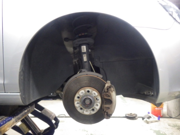 右フロント廻り損傷でのお預かりになります。 まず初めに、ホイールへの損傷があったので、足廻りの計測作業を行いました。 足廻りの計測を行ない、数値に問題が無い事を…