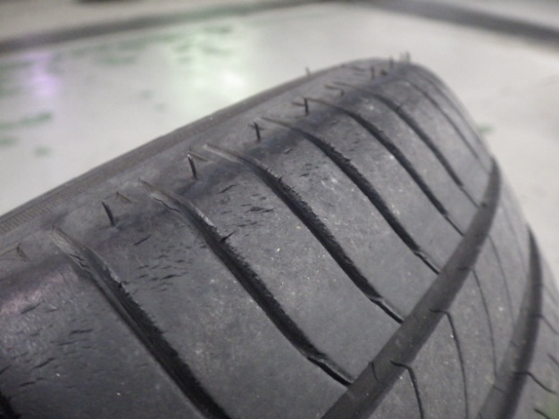 前後共にタイヤの残り溝も十分ありましたが、少しひび割れが入り始めています。