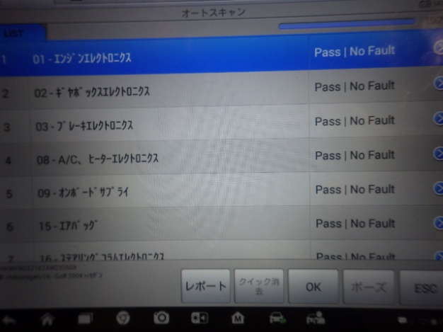 テスターにて各制御系統の診断を行いましたが異常ありませんでした。