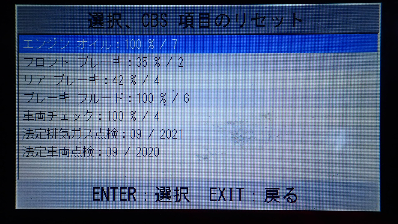 テスターにて故障コードの確認と、サービスのリセットを実施しています。