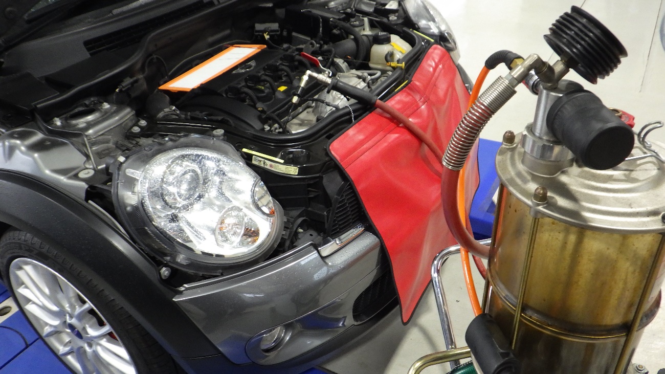 I様 BMWミニ オイル、LLC漏れ修理レポート 75256 km この度はご入庫ありがとうございます。 エンジンオイル、クーラント漏れの修理作業に取り掛かって…