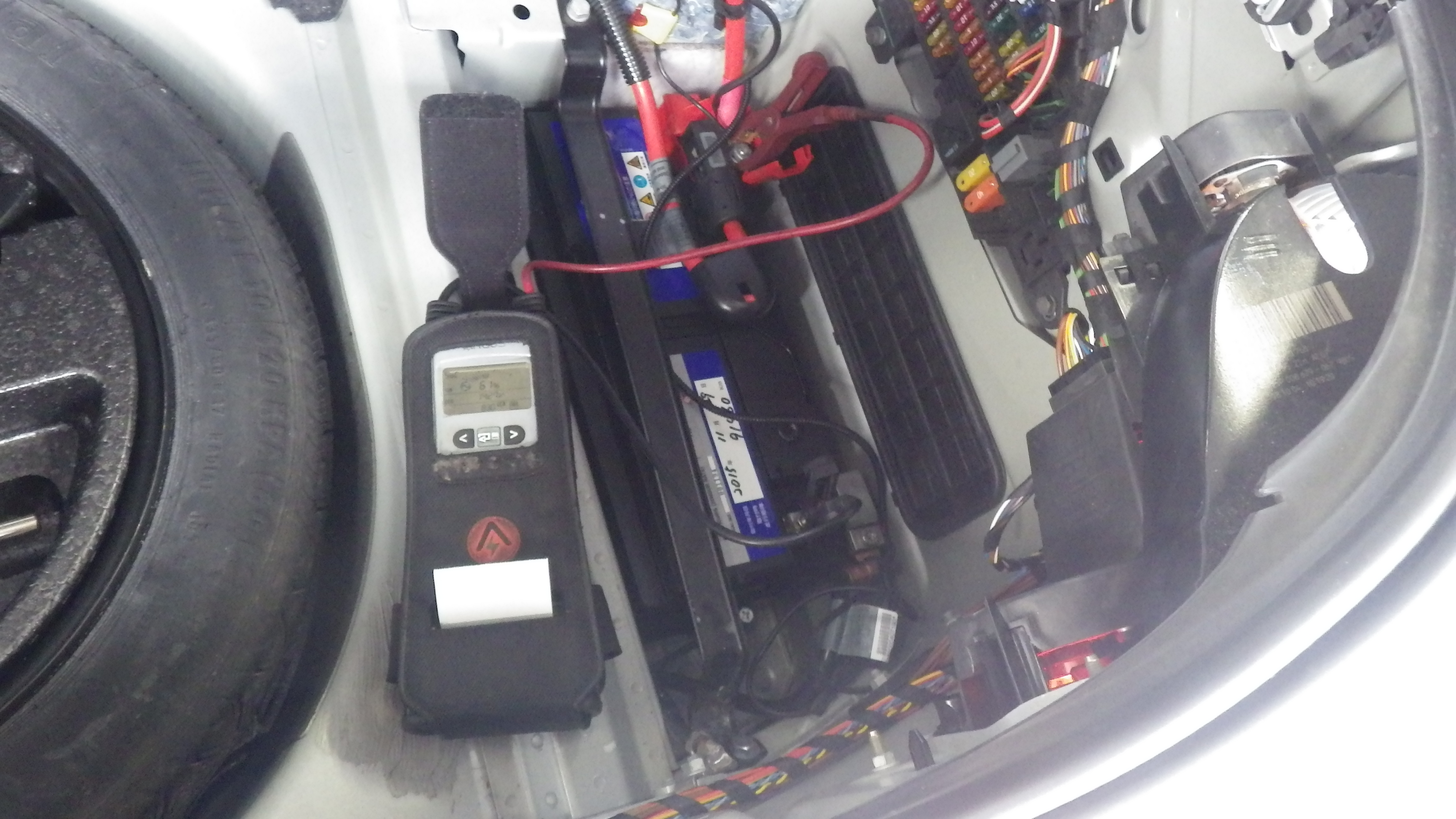 テスターにてバッテリーの点検を実施しています。