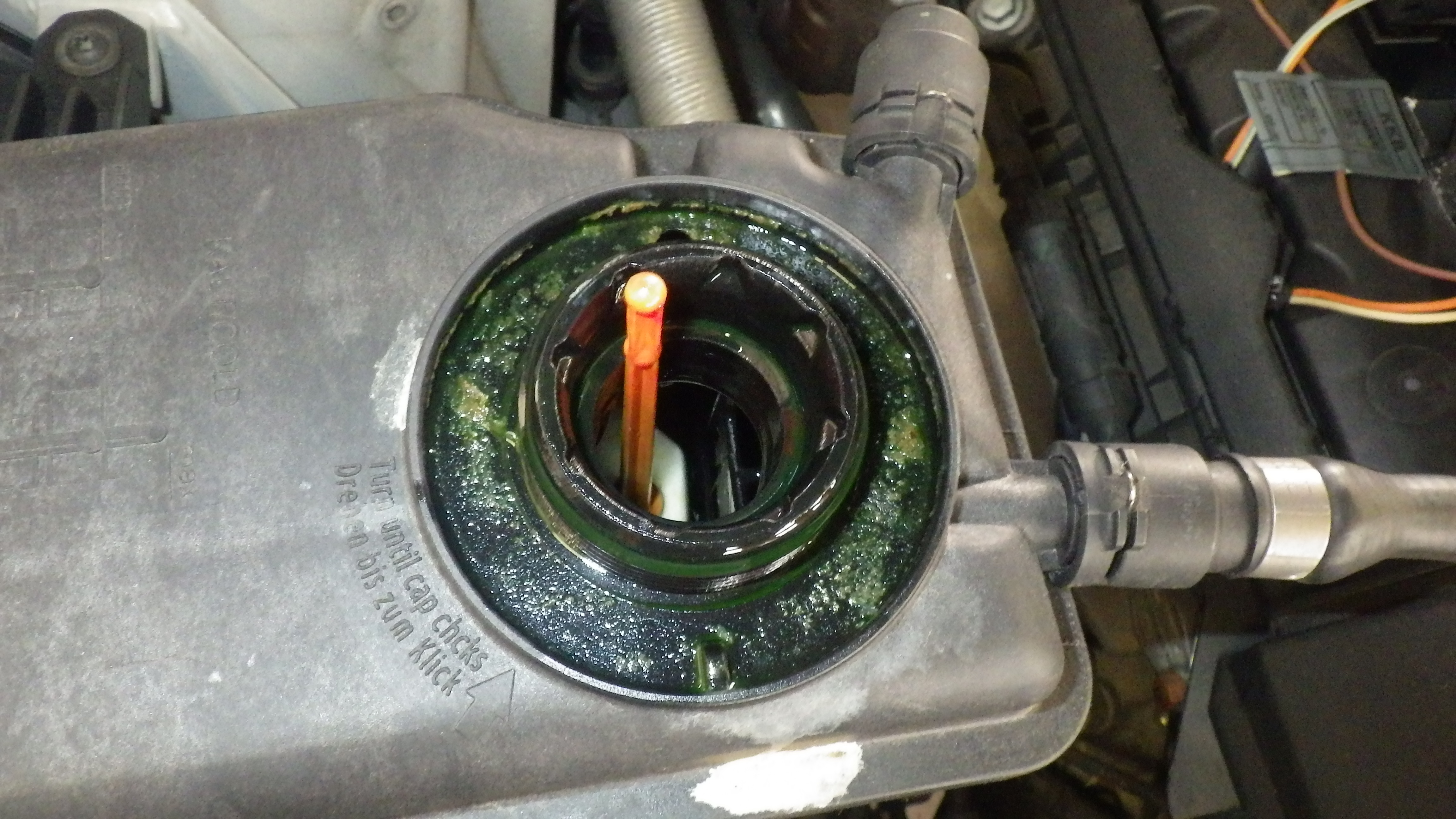 エンジン冷却水です。クーラント量、状態、各部漏れ等点検実施しています。