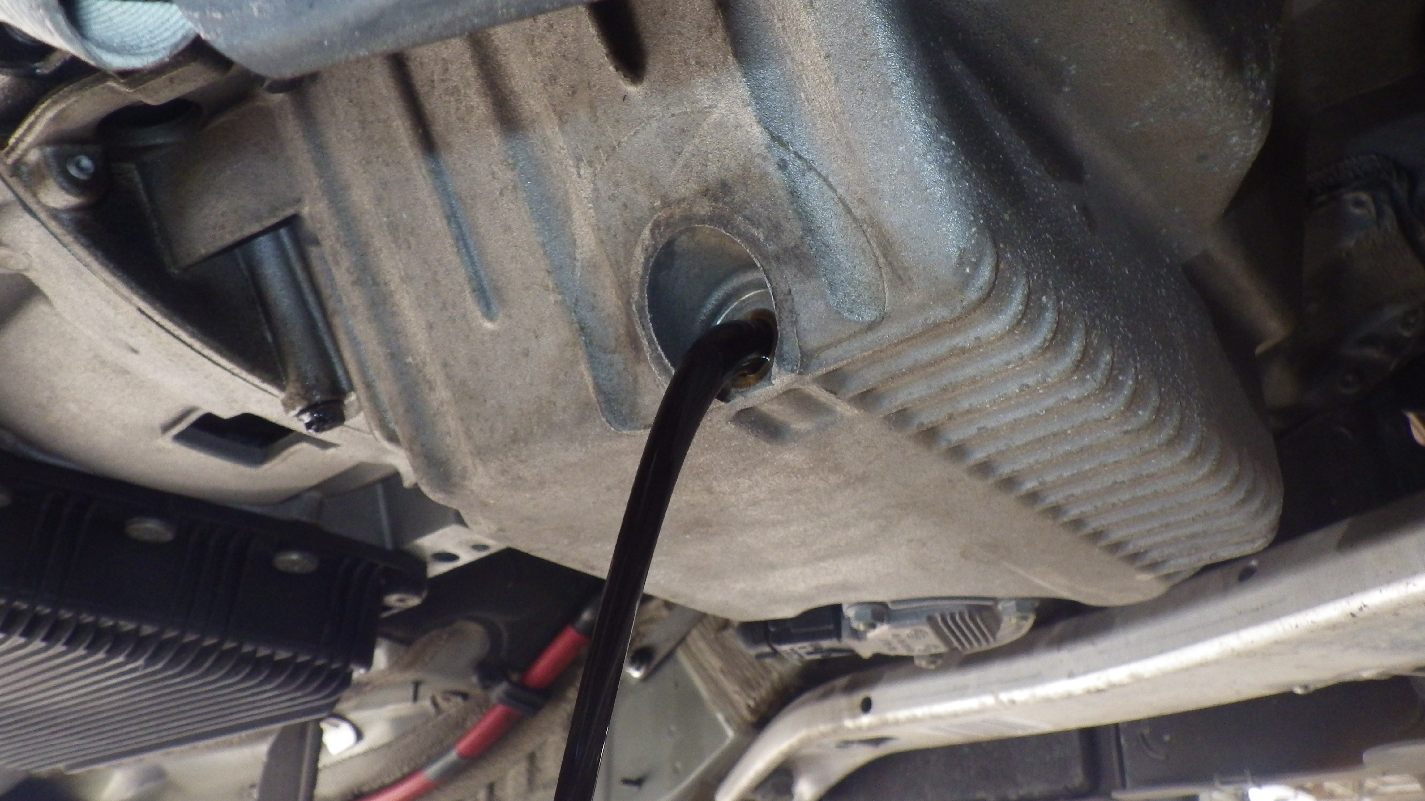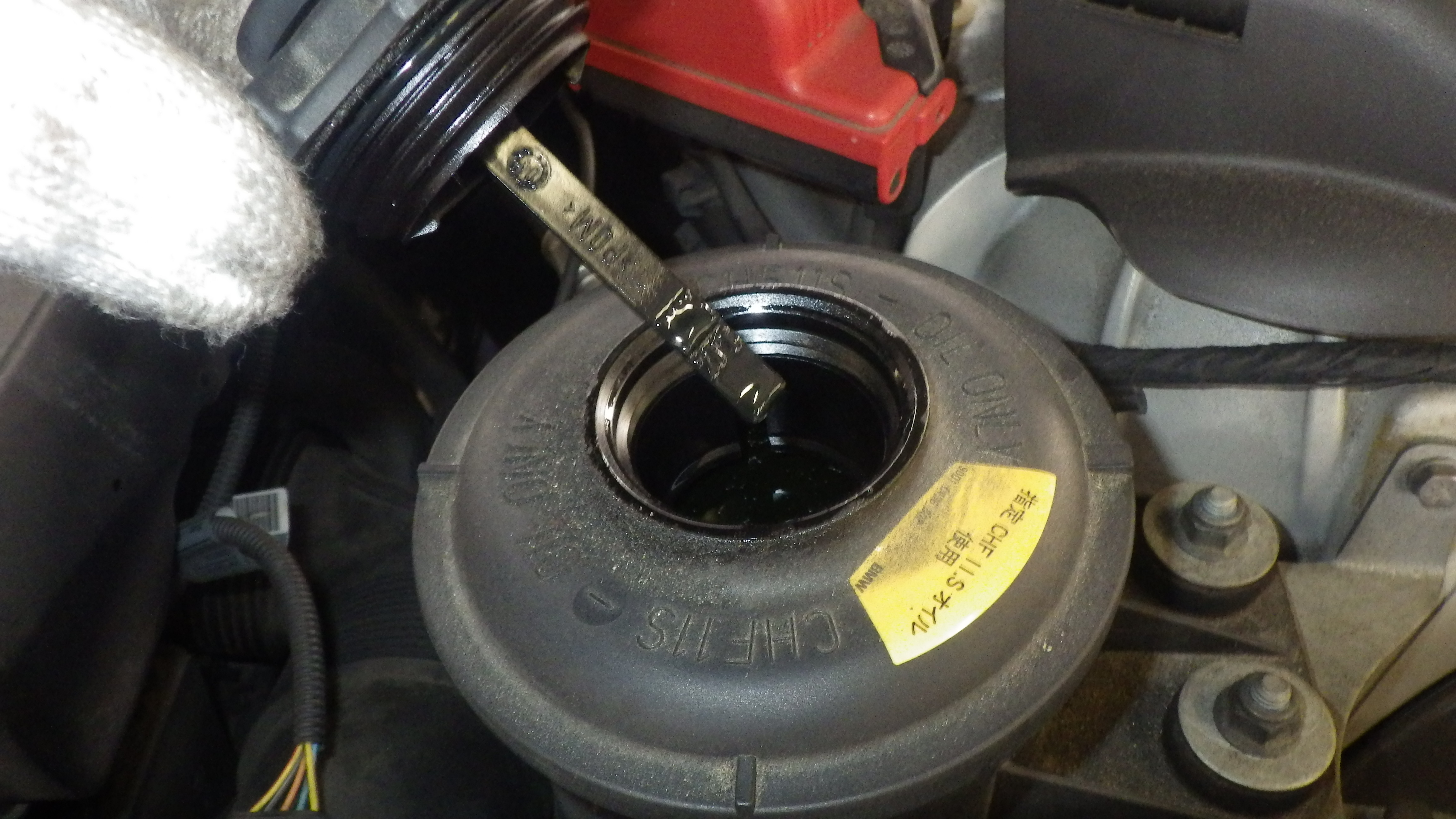 交換前、交換後のオイルです。交換後オイル量の点検も実施しています。