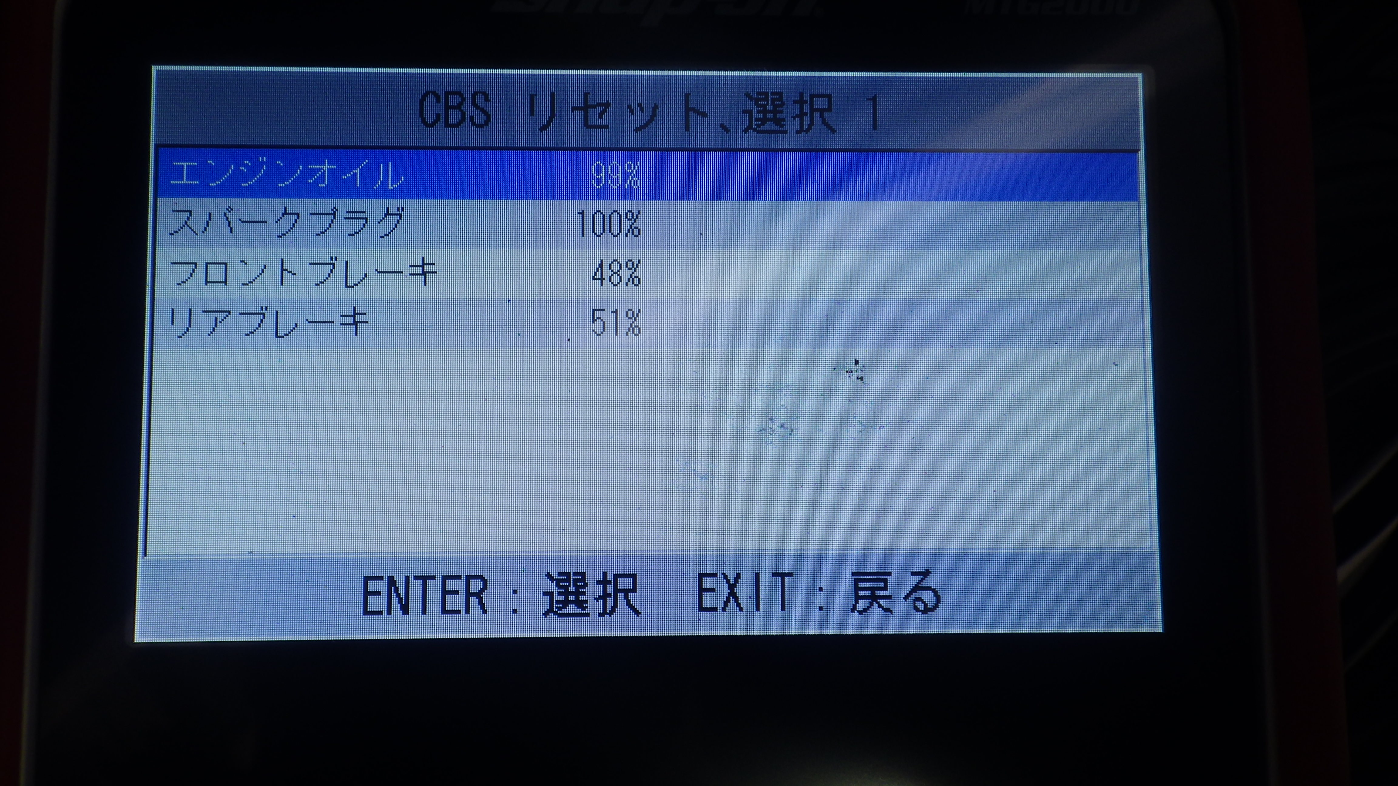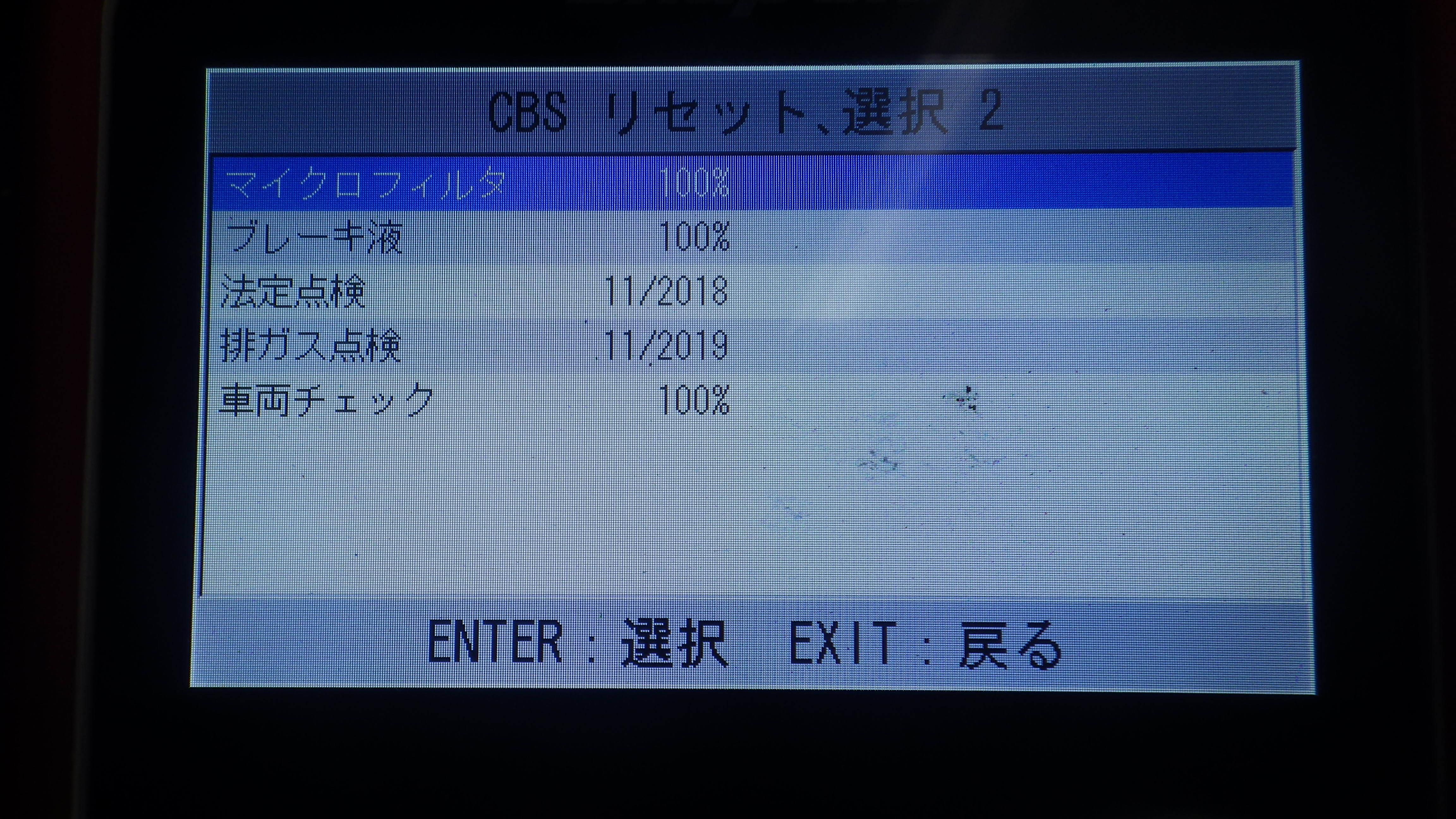 テスターにて故障コードの確認と、サービスのリセットを実施しています。