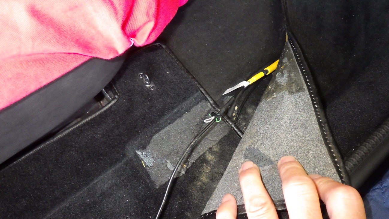 配線は助手席側の再度トレー下にあります。