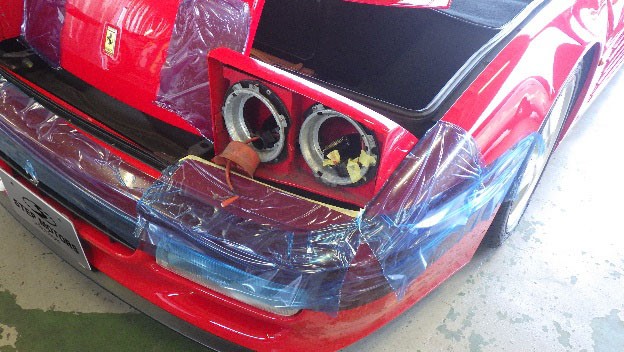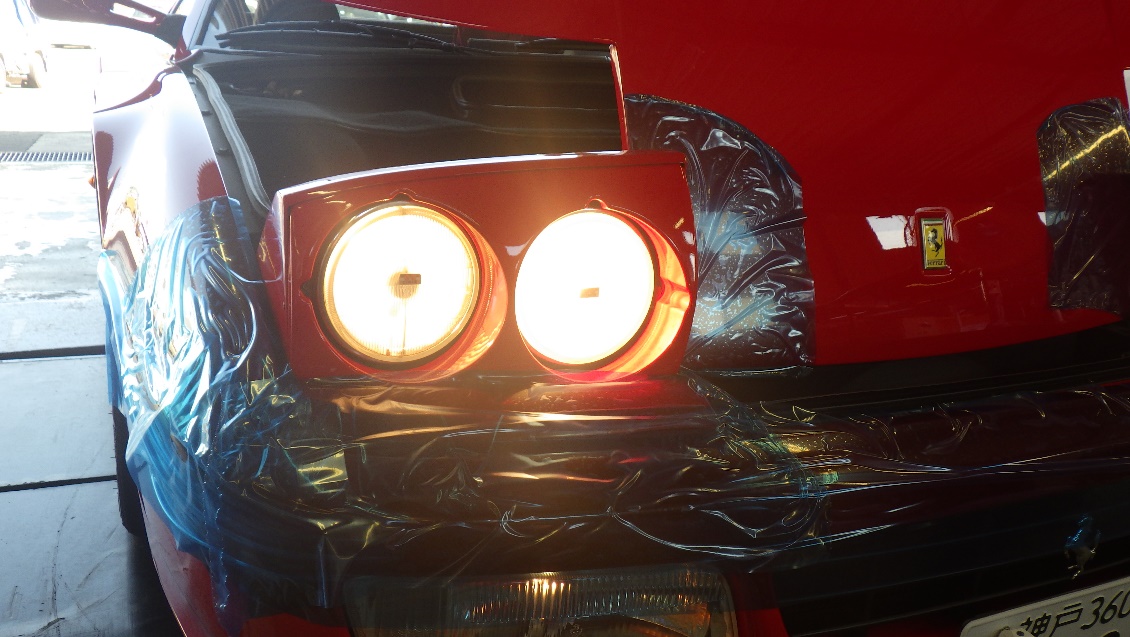 各部養生フィルムを貼り点灯状態を確認。ヘッドライトHI、LO。
