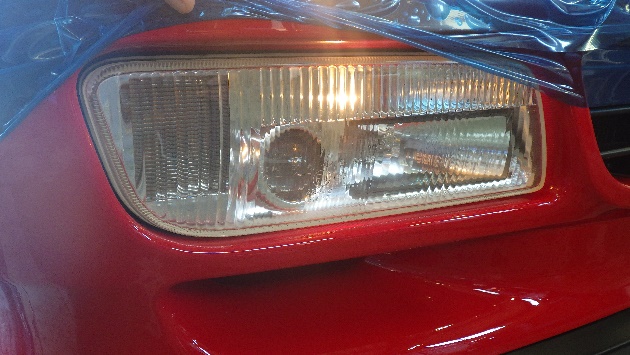 ヘッドライトを取り外しに掛かりました。 曇っているのがよく分かると思います。