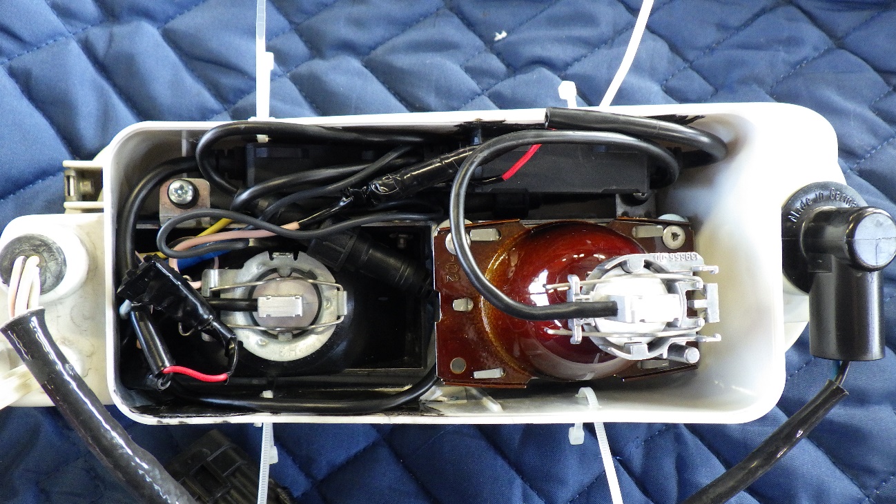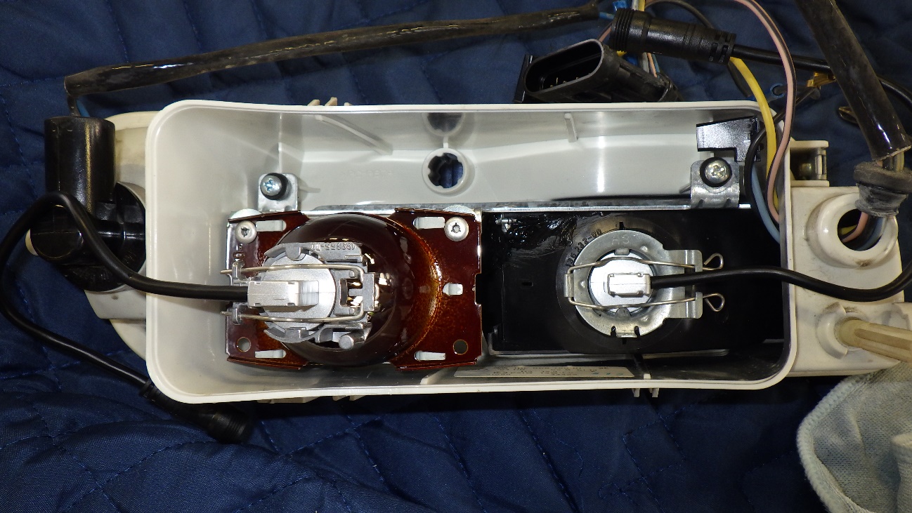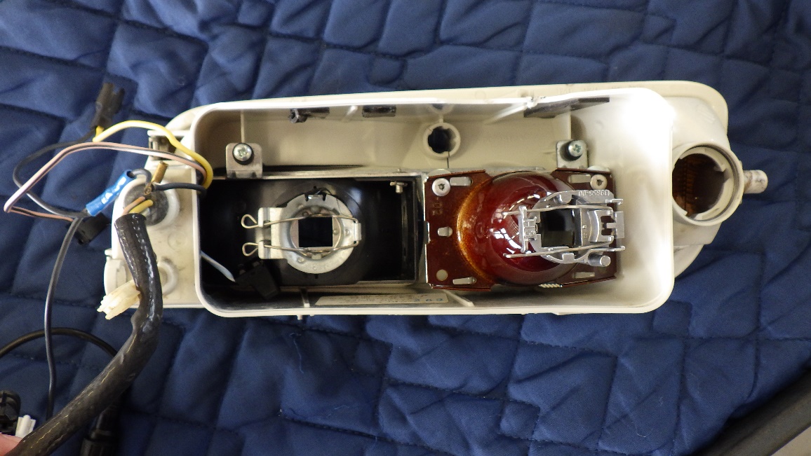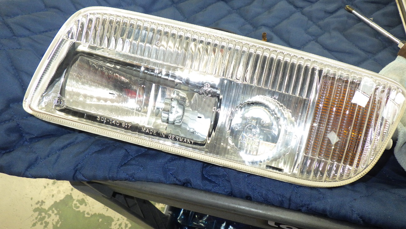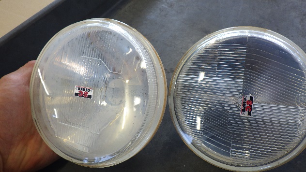 ライトを消した状態です。レンズ内部が白く曇っています。当初の予定ではレンズケースを社外品に交換でしたが、規格に合うものが無く内部洗浄で作業を進めました。