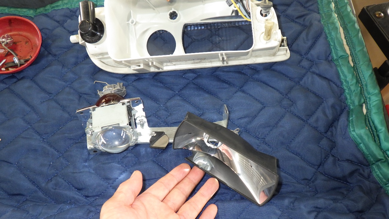 フォグランプユニットもレンズの曇りと内部パーツの劣化があり、