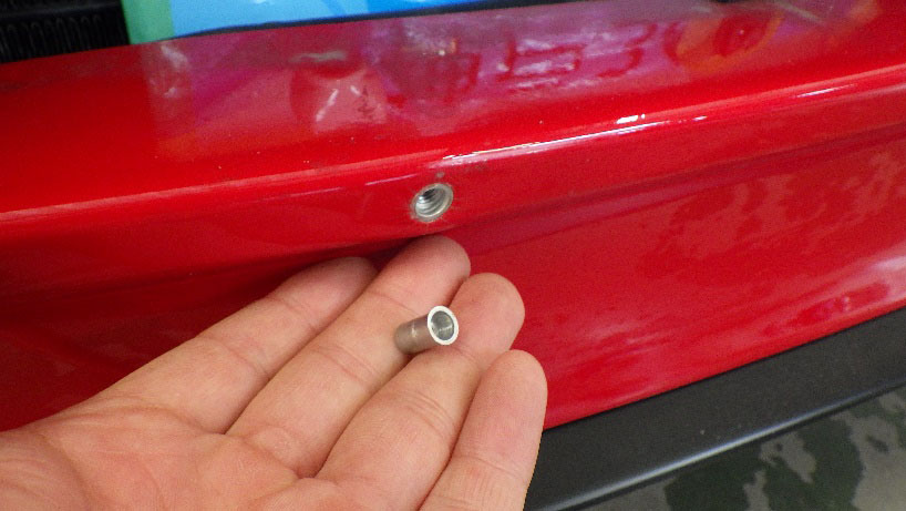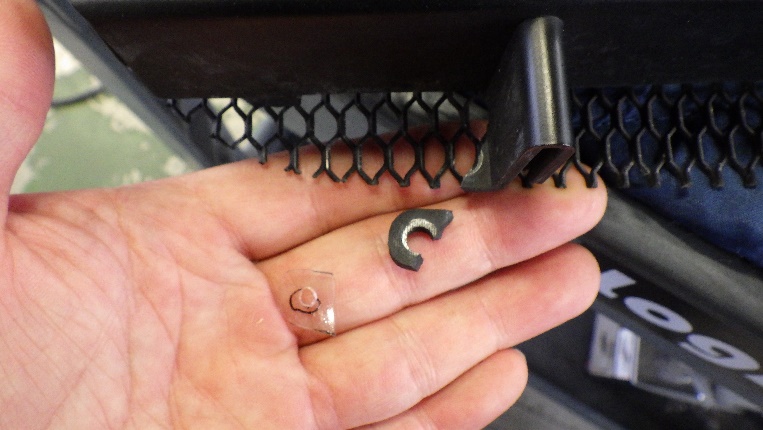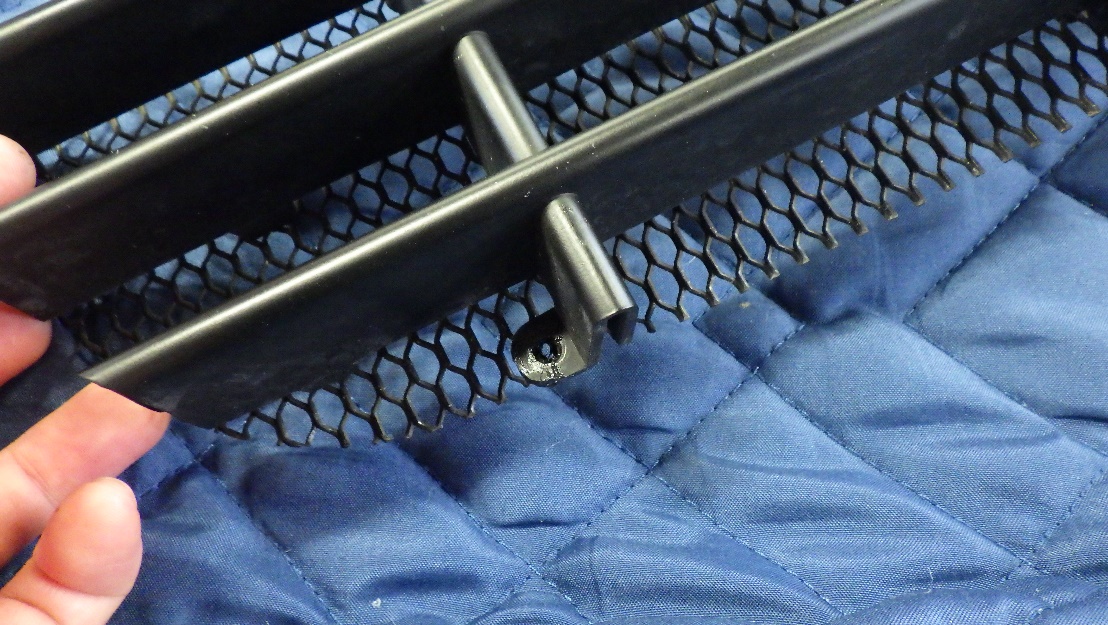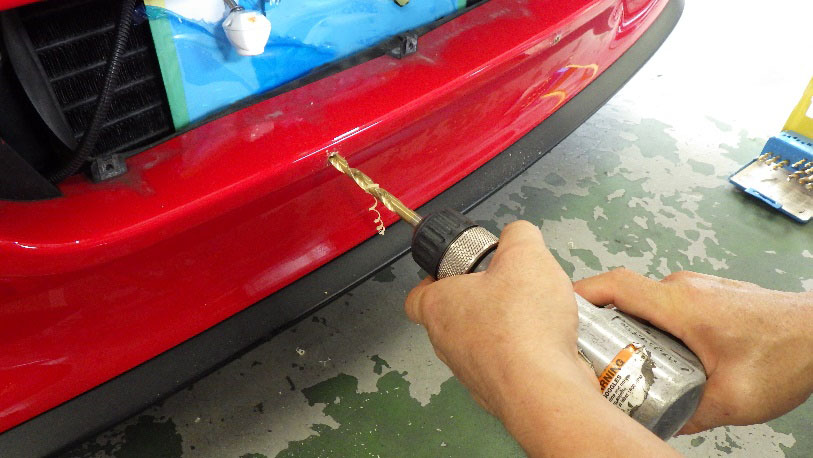 フォグランプ取付後はグリルの取り付けですが、ナンバープレートベースの取り付け方法をリベット留めから、ボルト留めに変更しました。又グリルの破損部分の修理もさせていただいております。