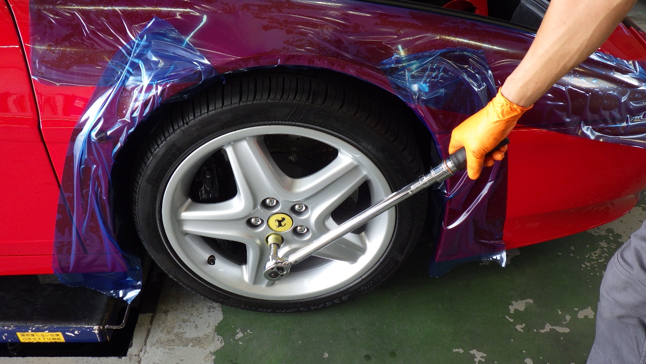 作業後は規定トルクにてホイールボルトを締め付け。
