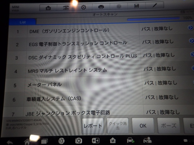 テスターにて各制御系統の診断を行いましたが異常ありませんでした。