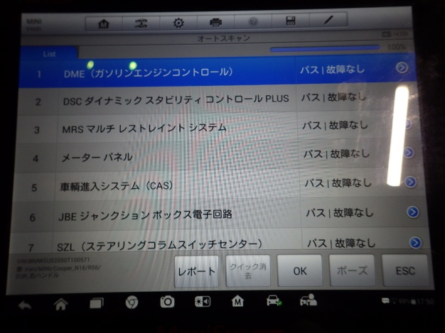 テスターにて各制御系統の診断を行いましたが異常ありませんでした。