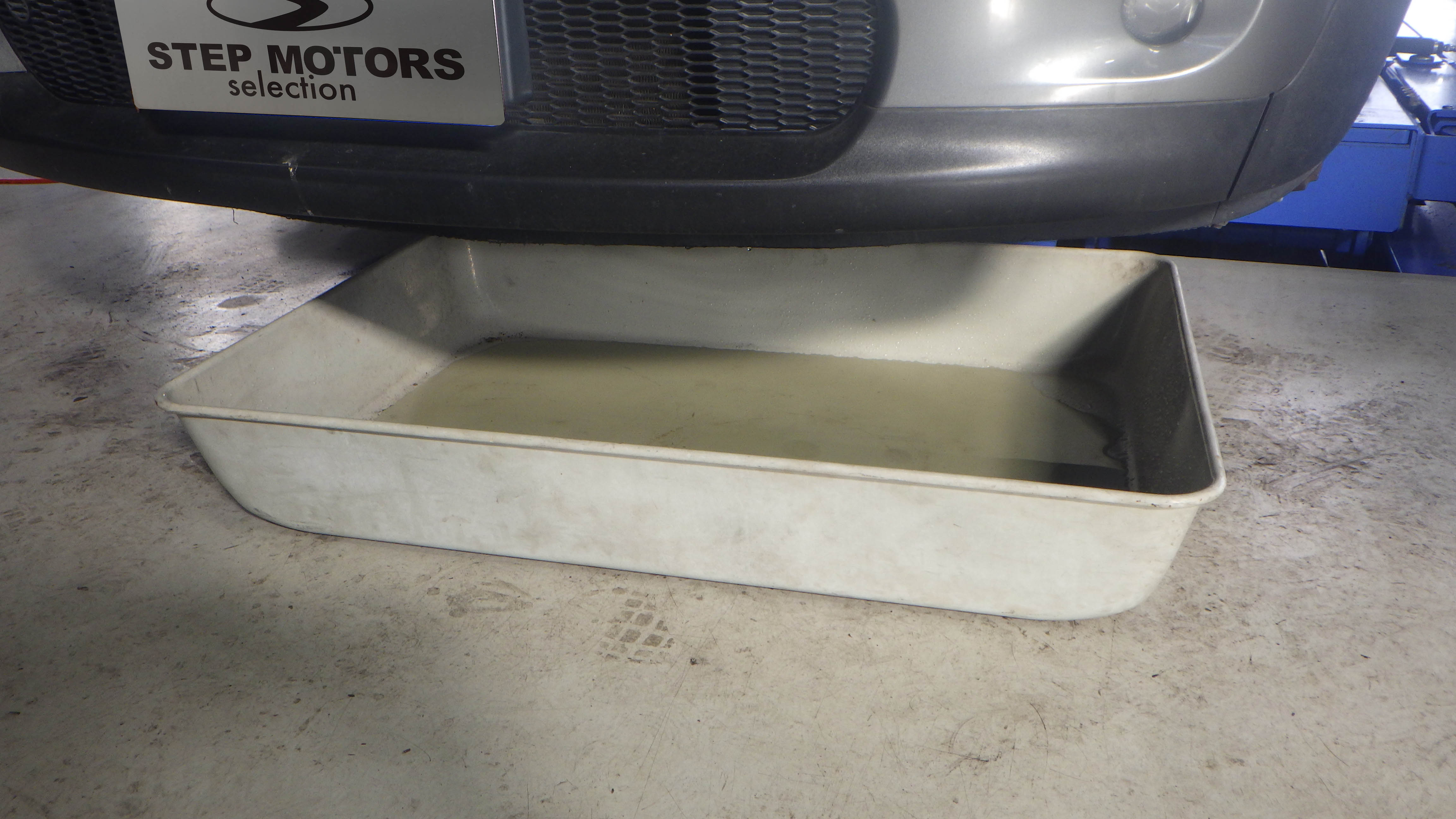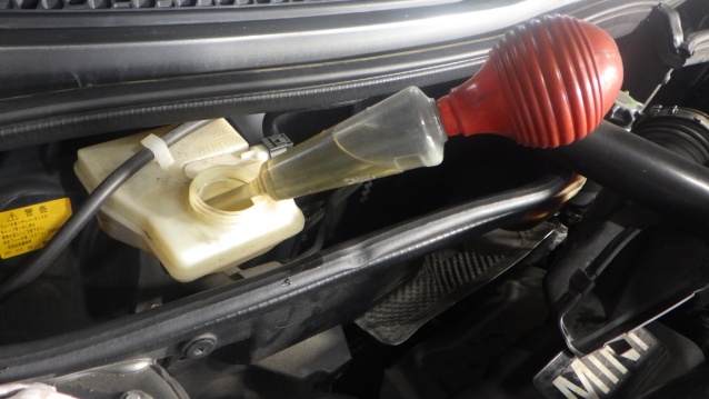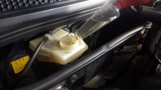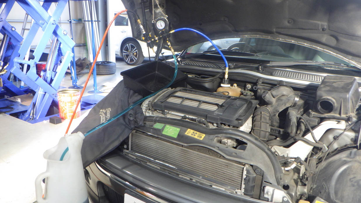 冷却系統を真空にし、新品のクーラントを補充しています。