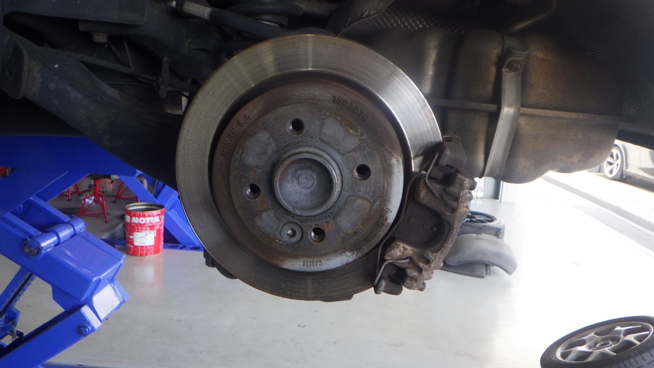 フロントディスク、ブレーキパッド、パッドセンサー交換実施しています。