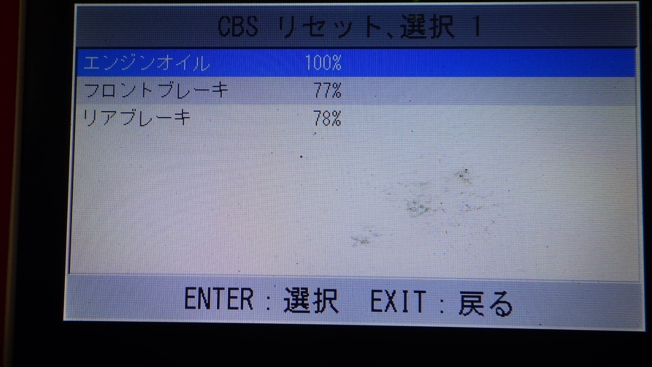 テスターにて故障コードの確認と、サービスのリセットを実施しています。