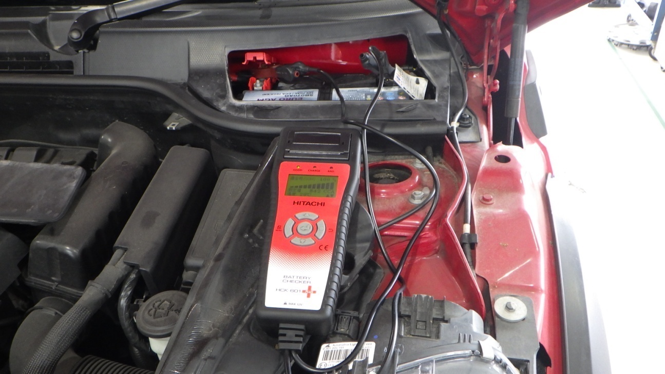 テスターにてバッテリーの点検を実施しています。