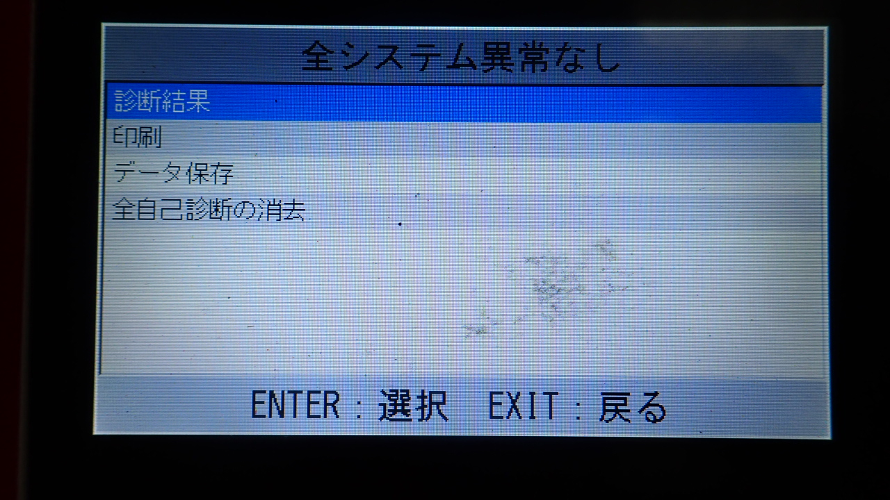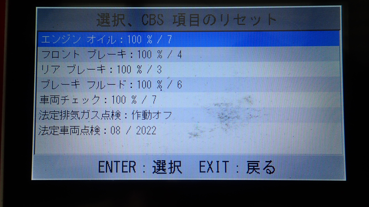 テスターにて故障コードの確認と、サービスのリセットを実施しています。
