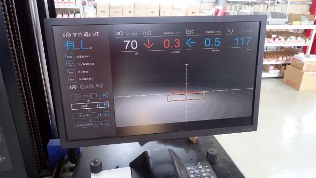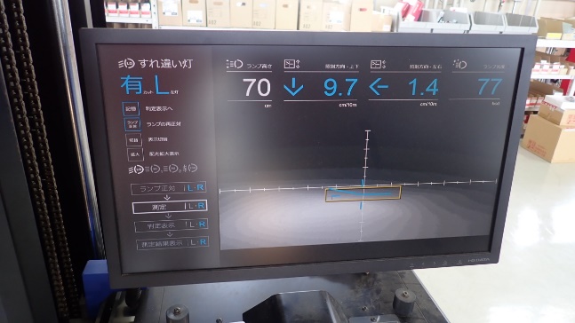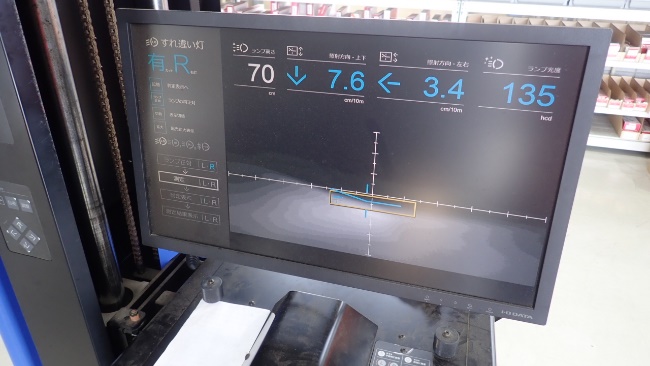 ヘッドライトの光軸がずれていましたので調整実施しています。