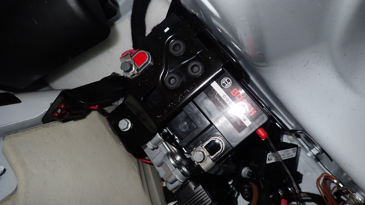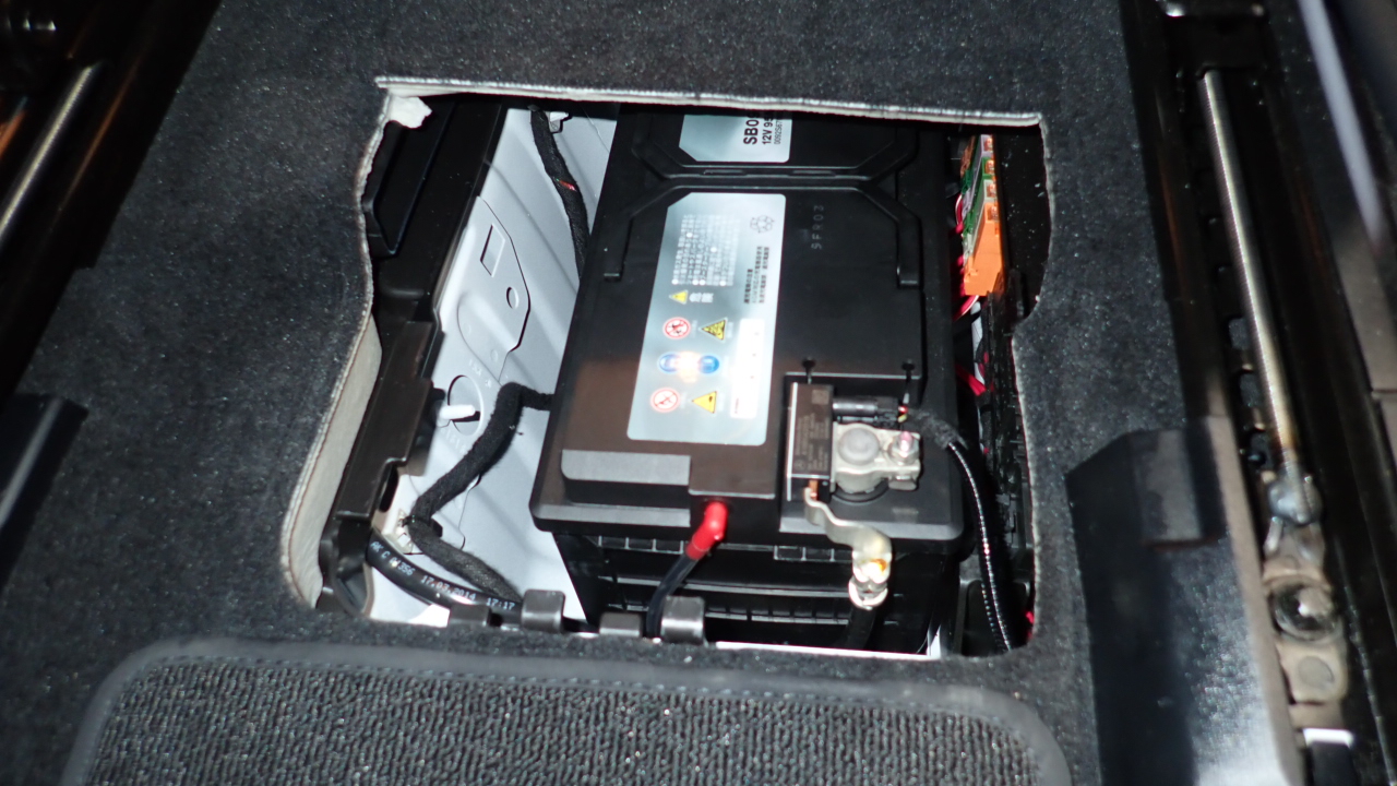 スターターバッテリーです。運転席のシート下に搭載されています。