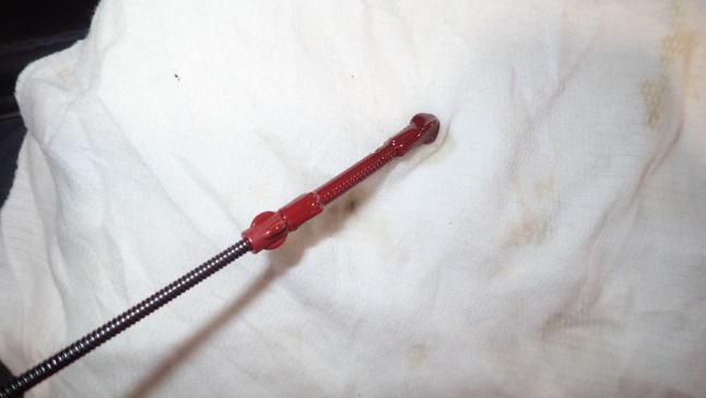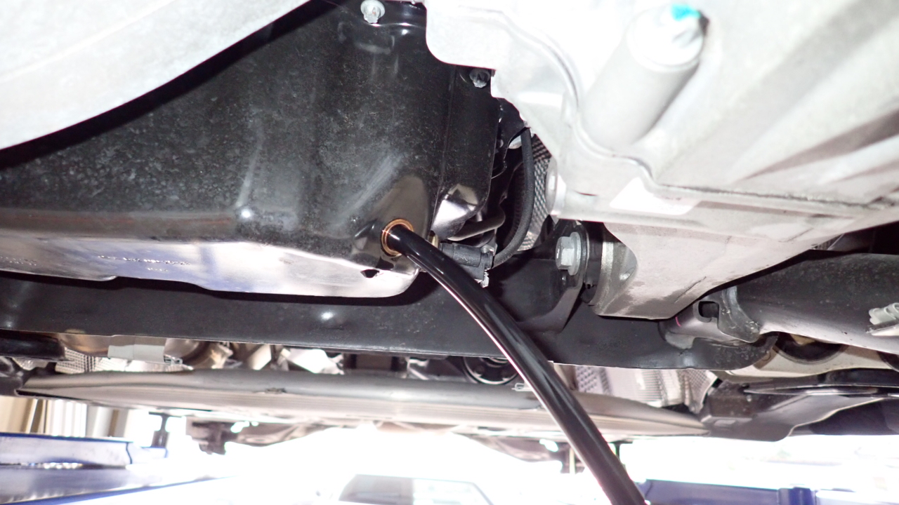 交換前、後のエンジンオイルです。 交換後オイル量の点検も実施しています。