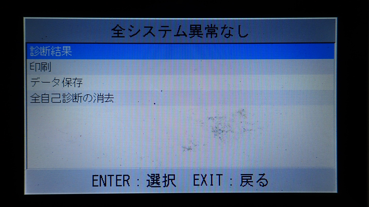 テスターにて故障コードの確認と、サービスのリセットを実施しています。
