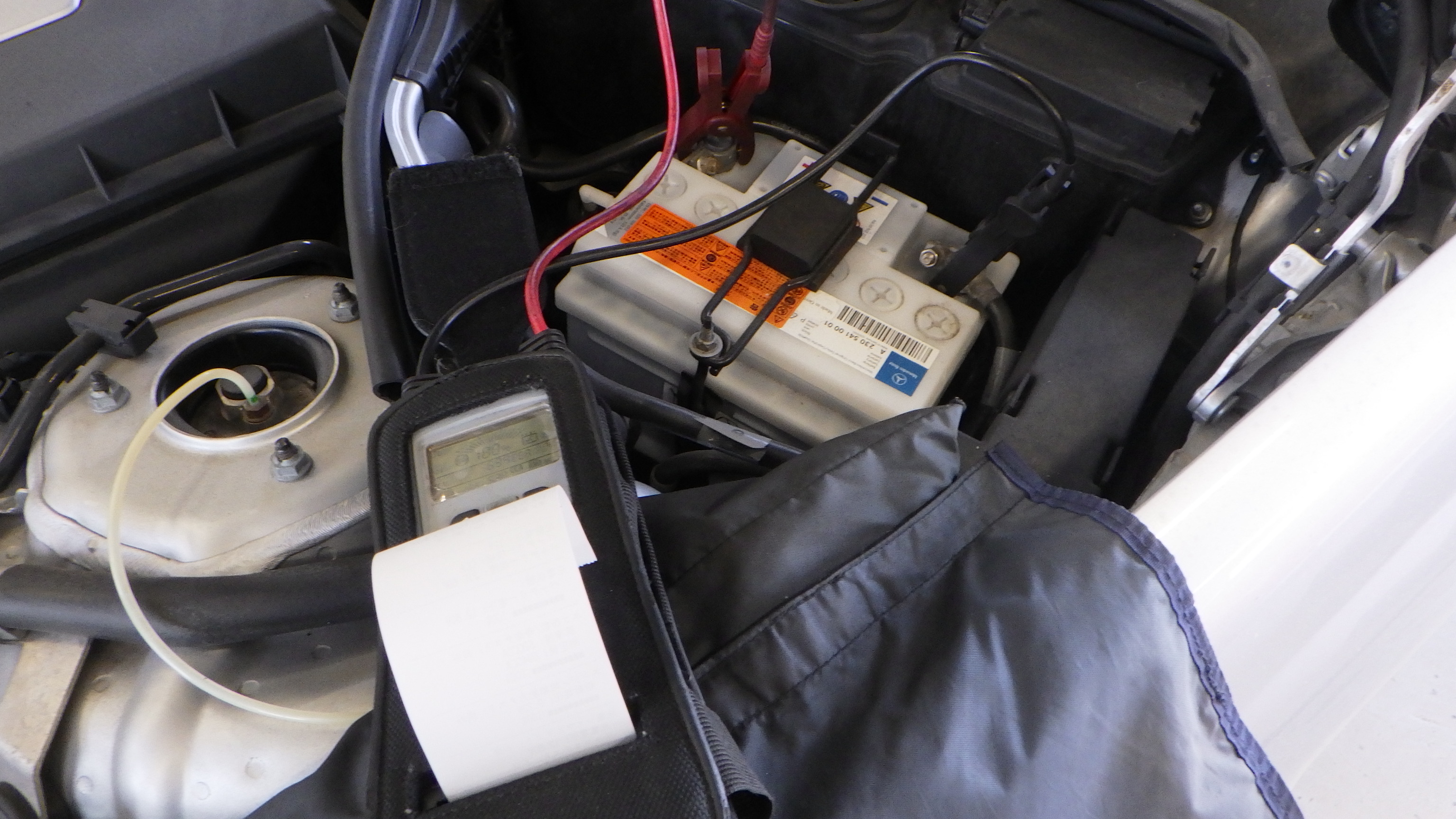 テスターにて故障コードの確認と、サービスのリセットを実施しています。