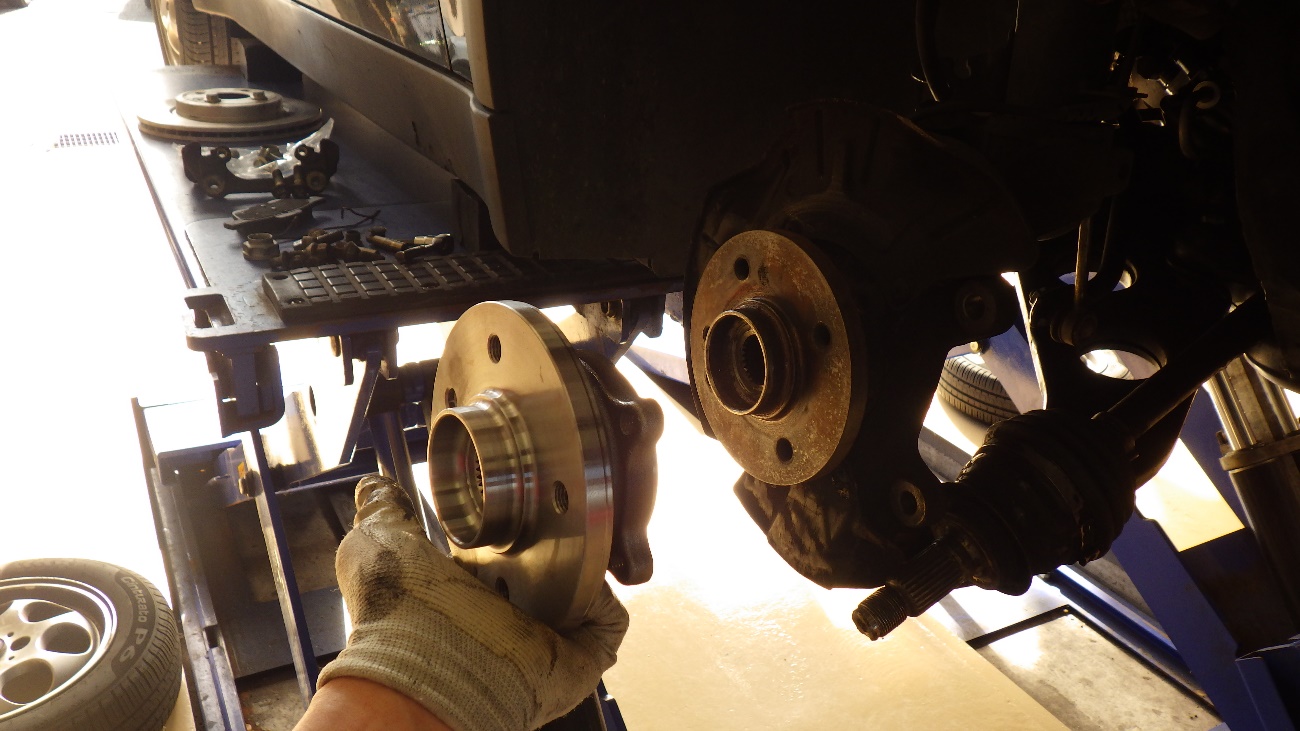 タイヤ脱落の恐れがあるのでフロントハブベアリング左右交換させていただきます。
