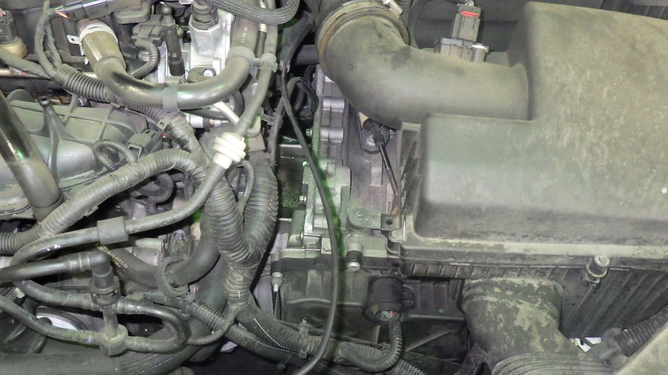 エアクリーナーを外して点検した結果、プラスチック部のウォーターパイプよりLLCが漏れておりました。