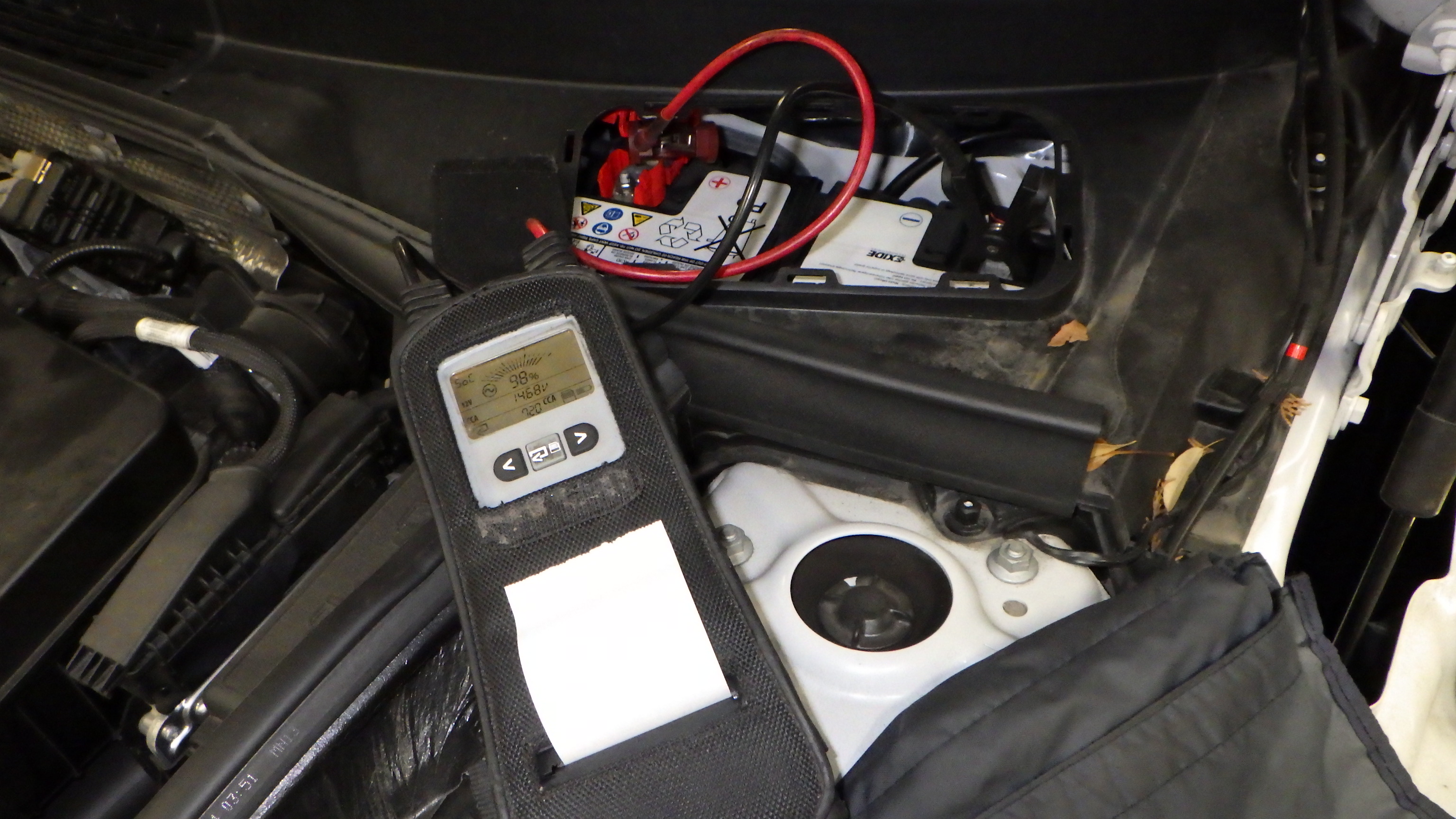 テスターにてバッテリーの点検を実施しています。