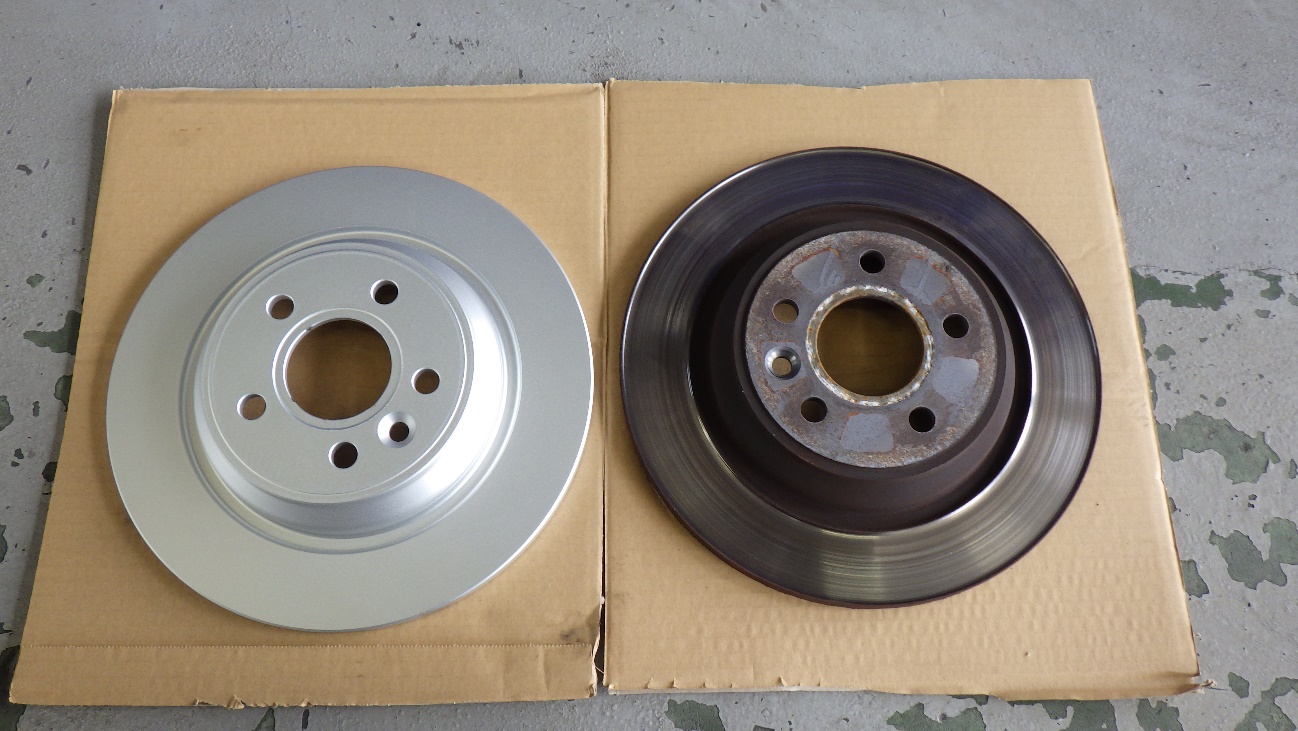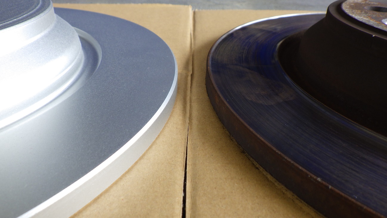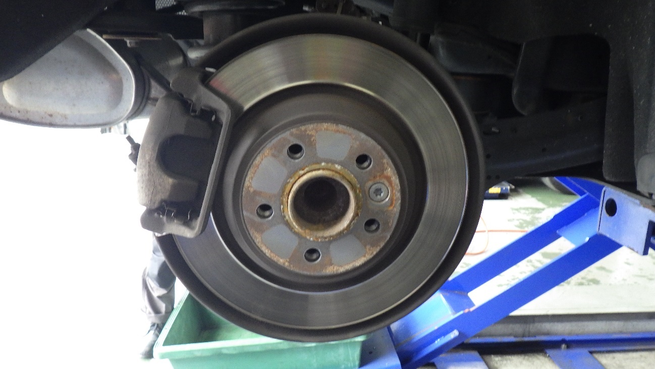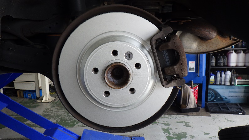 交換前のディスクローターは摩耗により、外側が反り立っております。