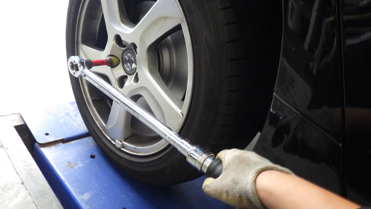 交換作業後、ホイルナットを規定トルクで締め付けしております。