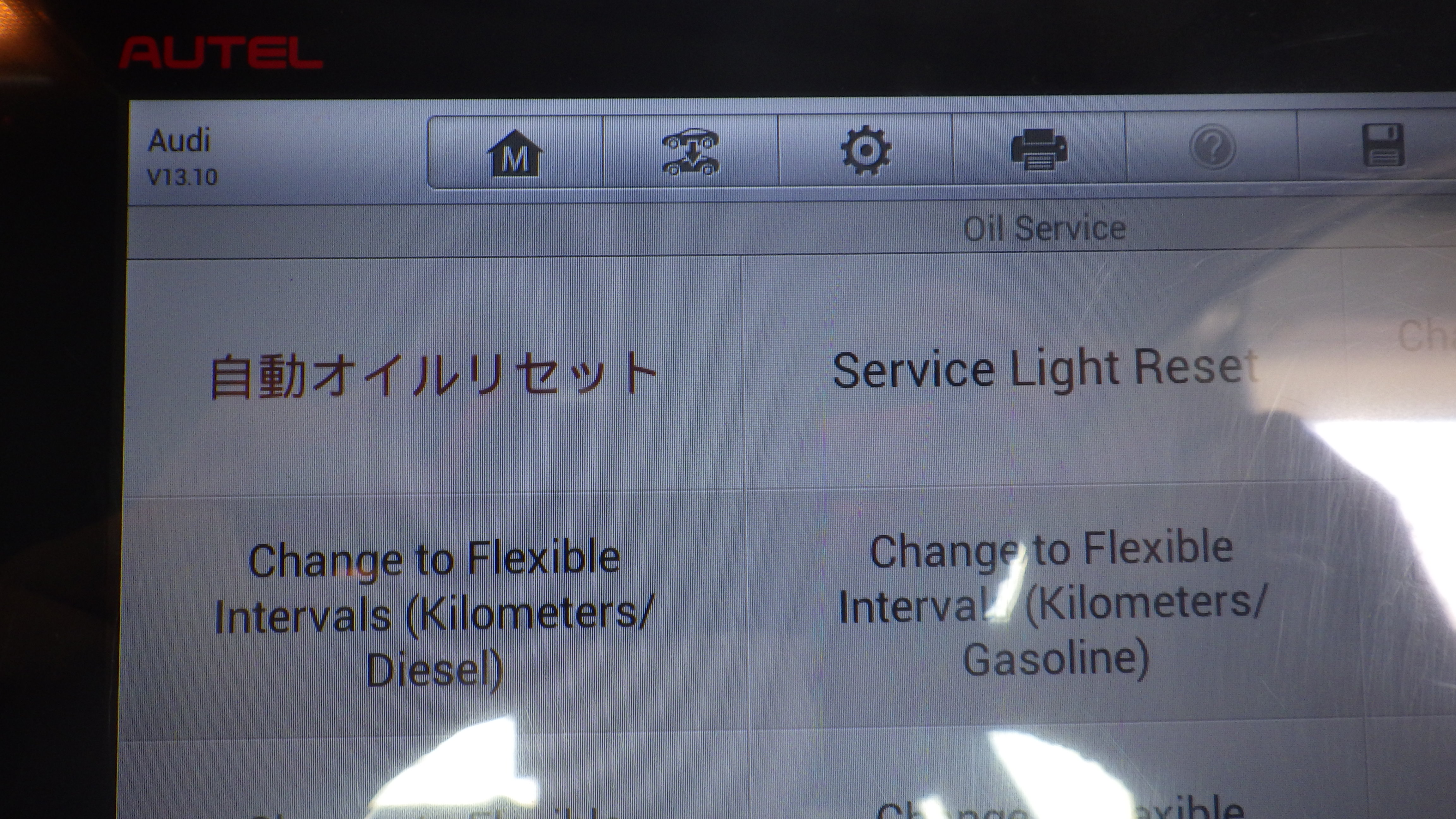 テスターにて故障コードの確認と、サービスのリセットを実施しています。